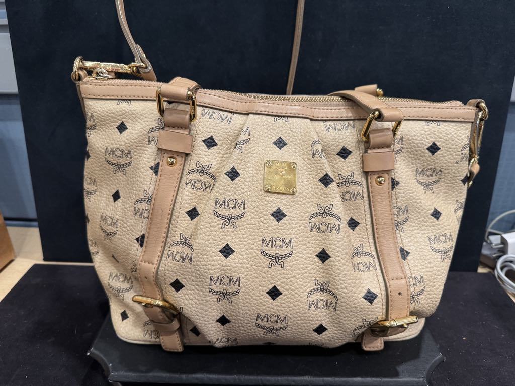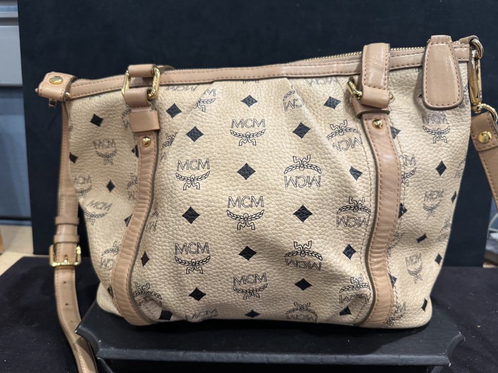 MCM Visetos Beige Leather 2 Way Shoulder Bag SPB JDW-350975
