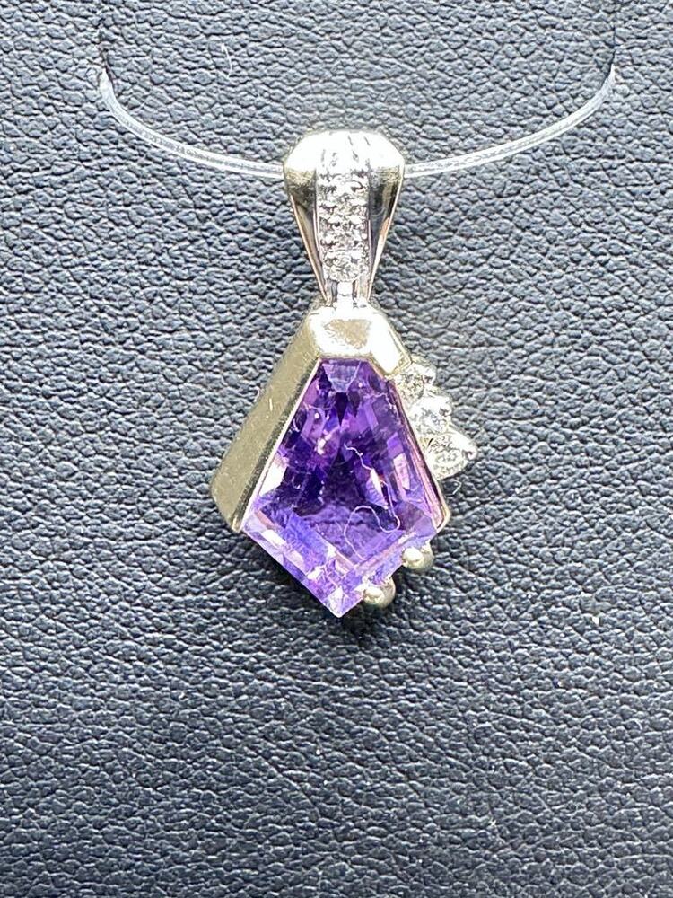 Gold 14kt 2.90gms Pendant 2.9G 14KT yellow gold w/ purple stone pendant 14K Gold and Amethyst Pendant LS(336892) Pendant Loc:floor