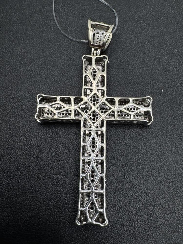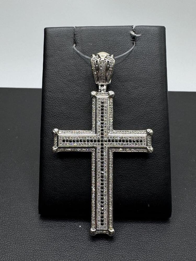 Gold 14kt 15.40gms Pendant 15.4G 14KT White Gold Diamond Cross Pendant w/ Black Stones 14K White Gold Cross Pendant with Stones LS(330081) Loc:vg3