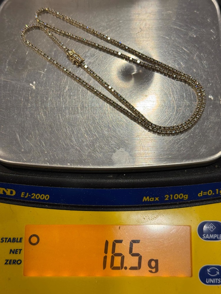 16.5G 14KT Yellow Gold Tennis Chain Necklace 20" 210 x 0.03ct Diamonds LS 340322