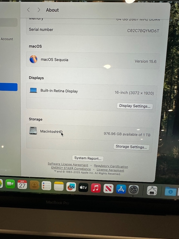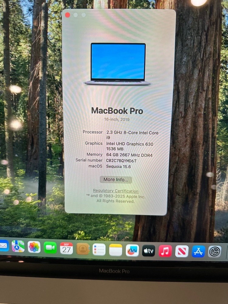 2019 Apple Macbook Pro 16" I9 64GB Ram 1TB SSD SPB-MS 347439