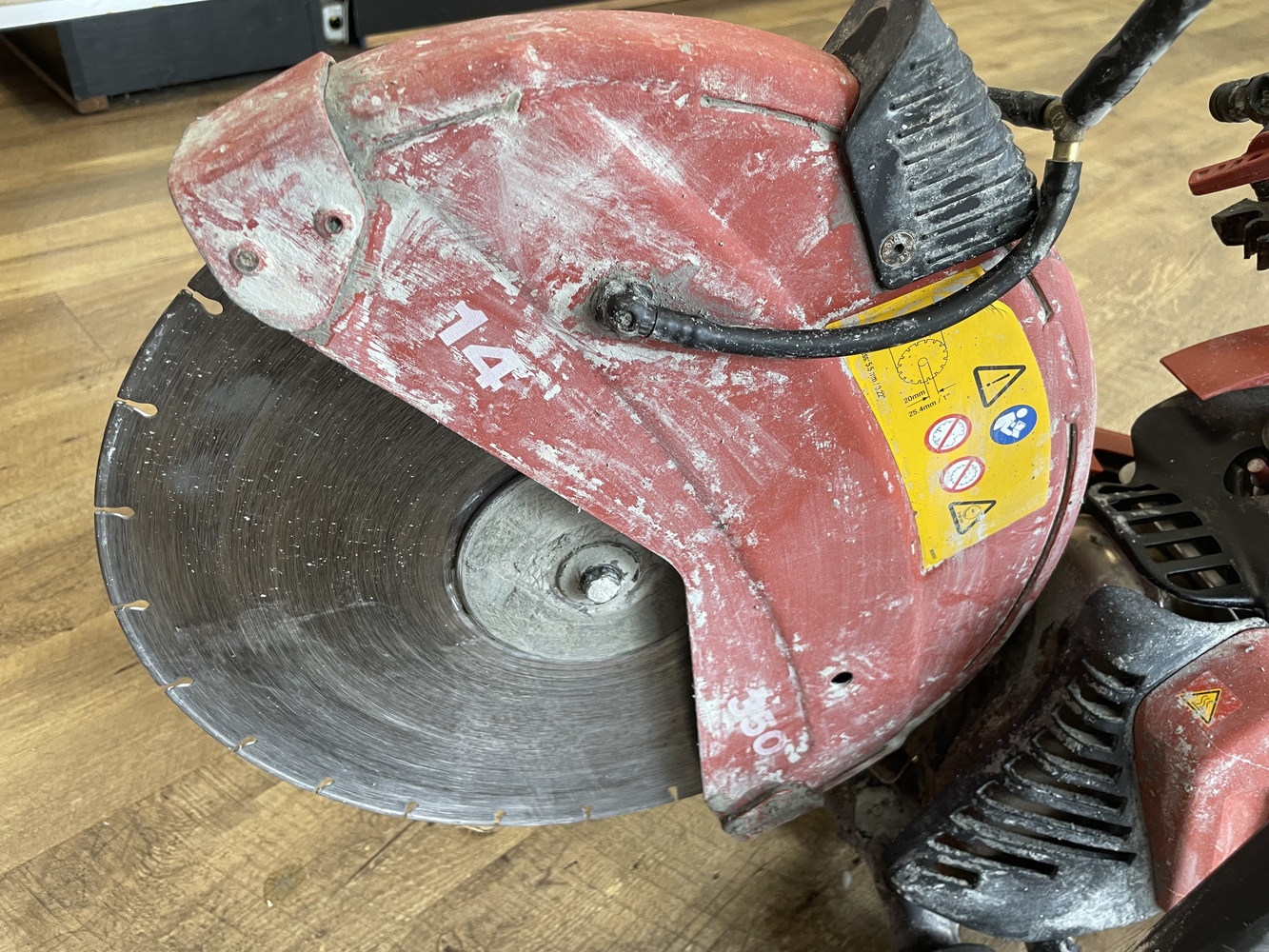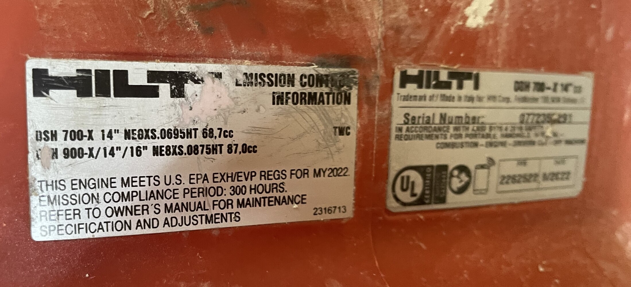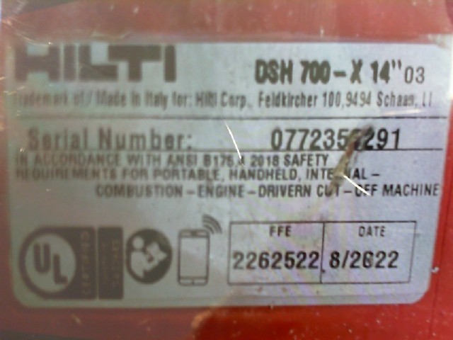 This is a preowned 2022 Hilti DSH 700-X 14" Gas Powered Cut Off Hand Saw Blade Power Tool. Tested does show signs of usage .