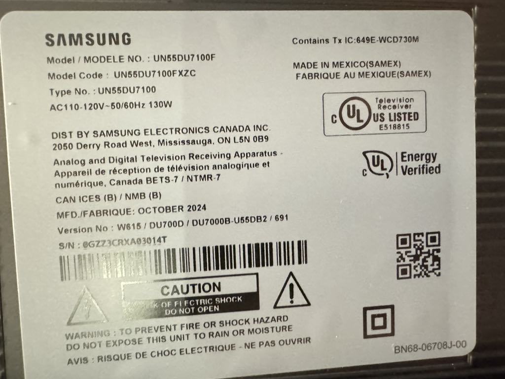Electronics TV's Samsung un55du7100f with power legs and remote