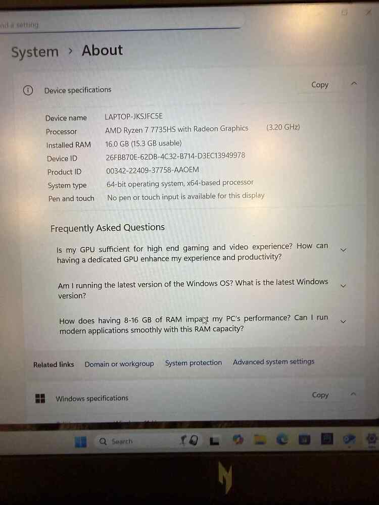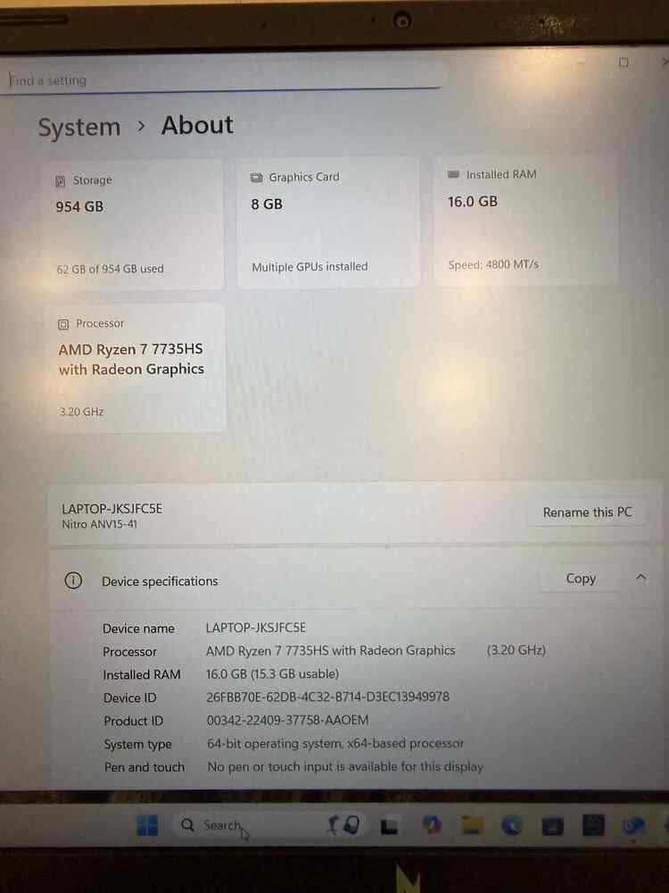 Computers Laptops Acer Nitro V15 16gb 1tb AMD ryzen 7 7735hs and charger
