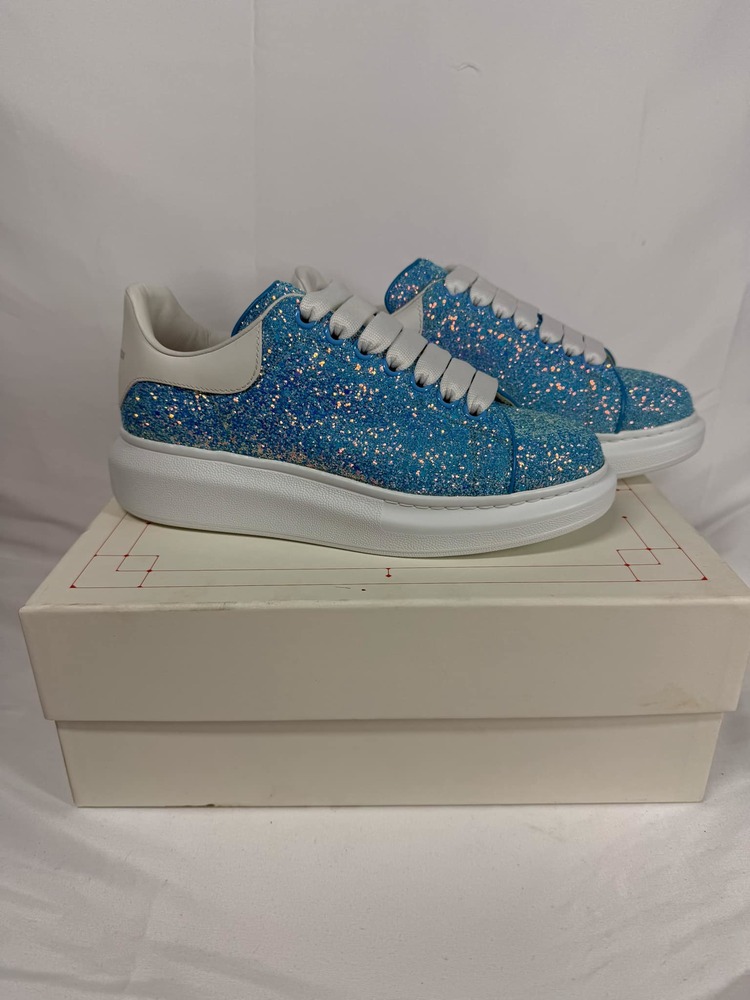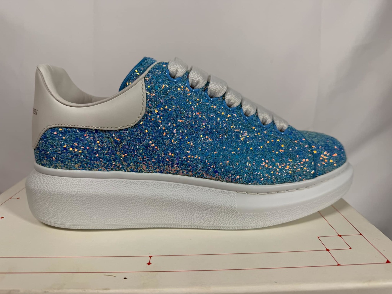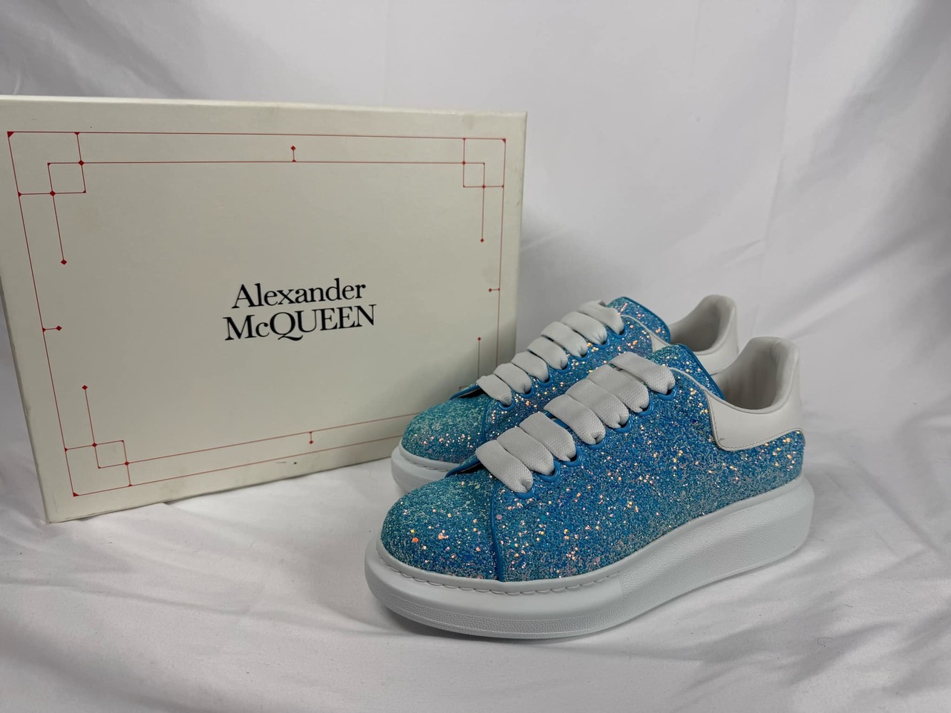 Apparel Shoes Alexander McQueen Oversized Metallic Blue Sparkle Size 38.5 J w/ box US size 8.5