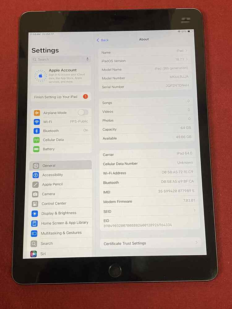 Apple iPad Tablet 9th Gen 64GB Wi-Fi + Cellular PPSDM 353132