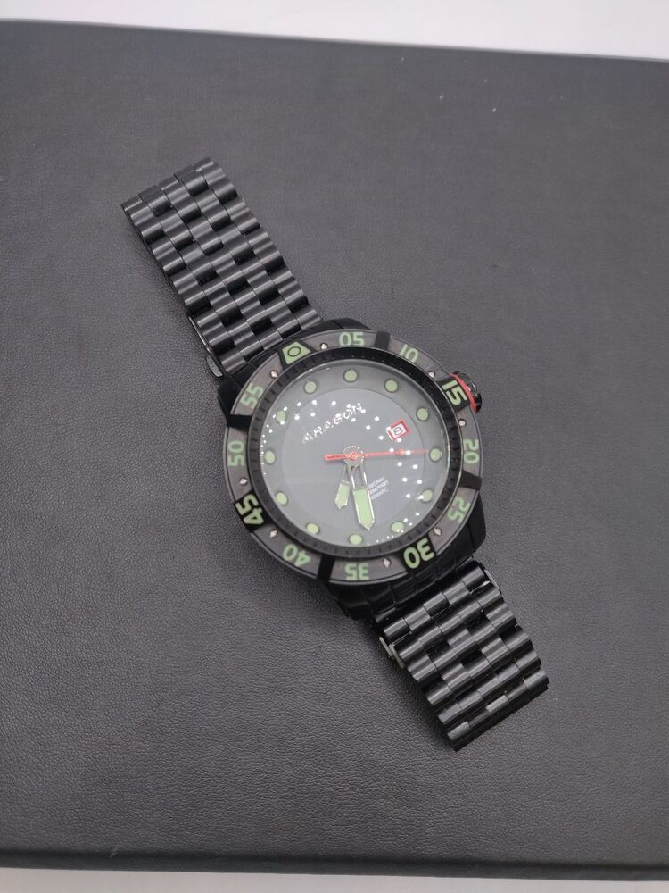 This is a nice working watch in good used condition. No scratches on the crystal. The band and the case does have some scratches present. No box or extra links. Watch only. Fits a wrist of 8''. Please see pictures for details.