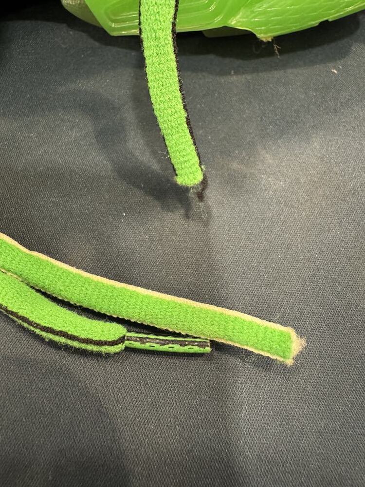 NO DUST BAG OR BOX, LIGHTLY USED, LACES ARE MISSING AGLETS ON LEFT SHOE (PLASTIC TIP)