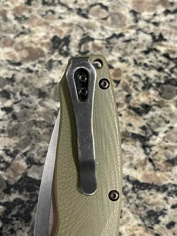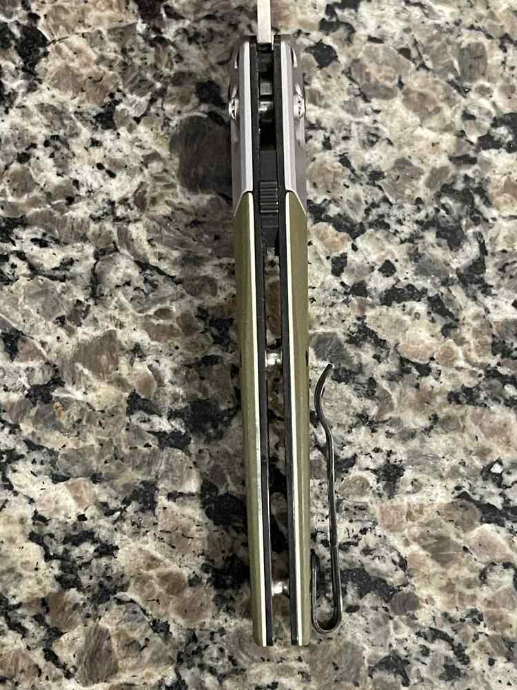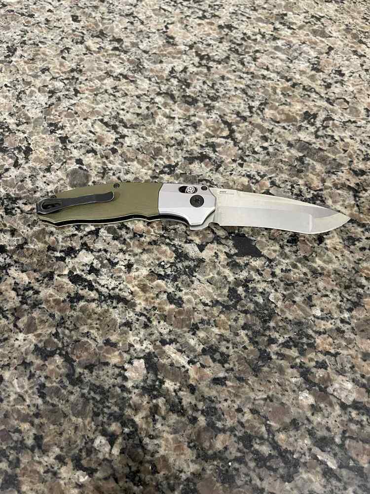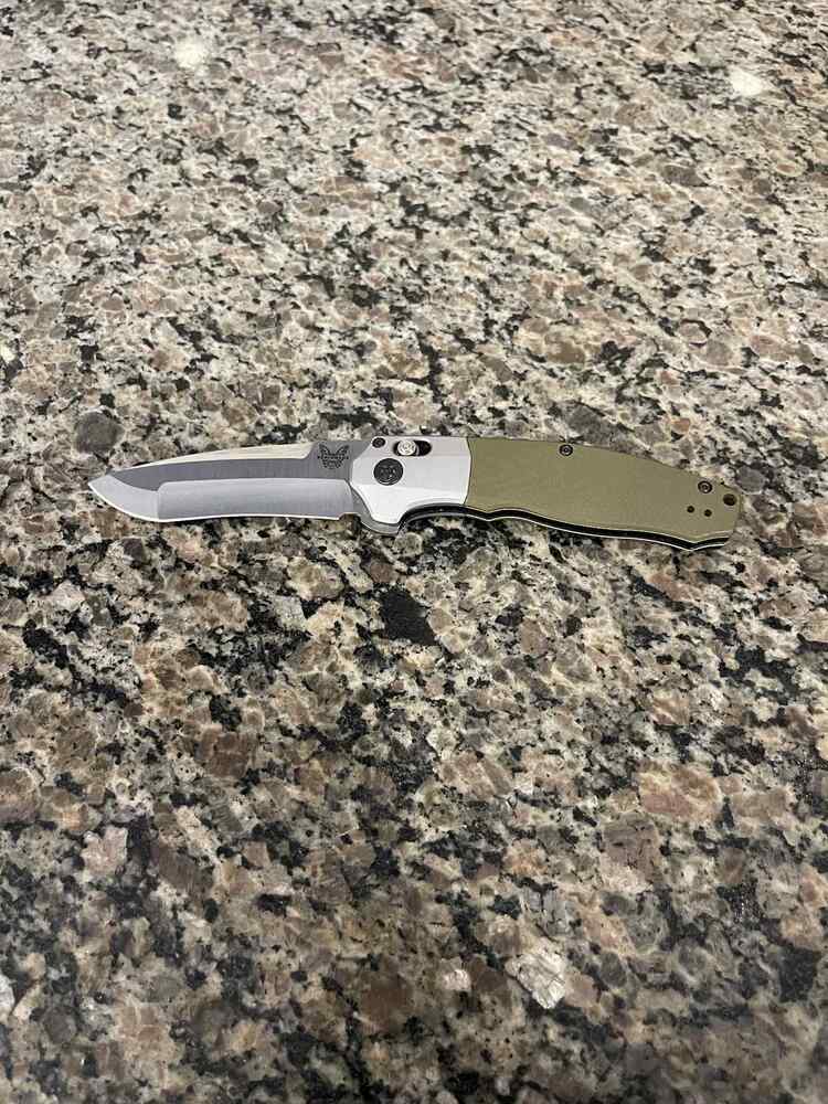 The Benchmade 496 Vector AXIS-Assist Knife OD Green G-10 (3.6" Satin) is in used good condition. The knife has chipping on the blade towards the tip. It is fully functional and ready for use. No box included.