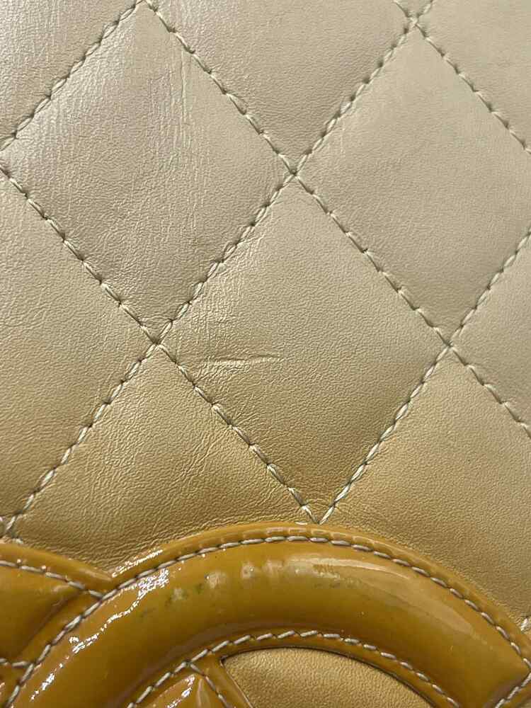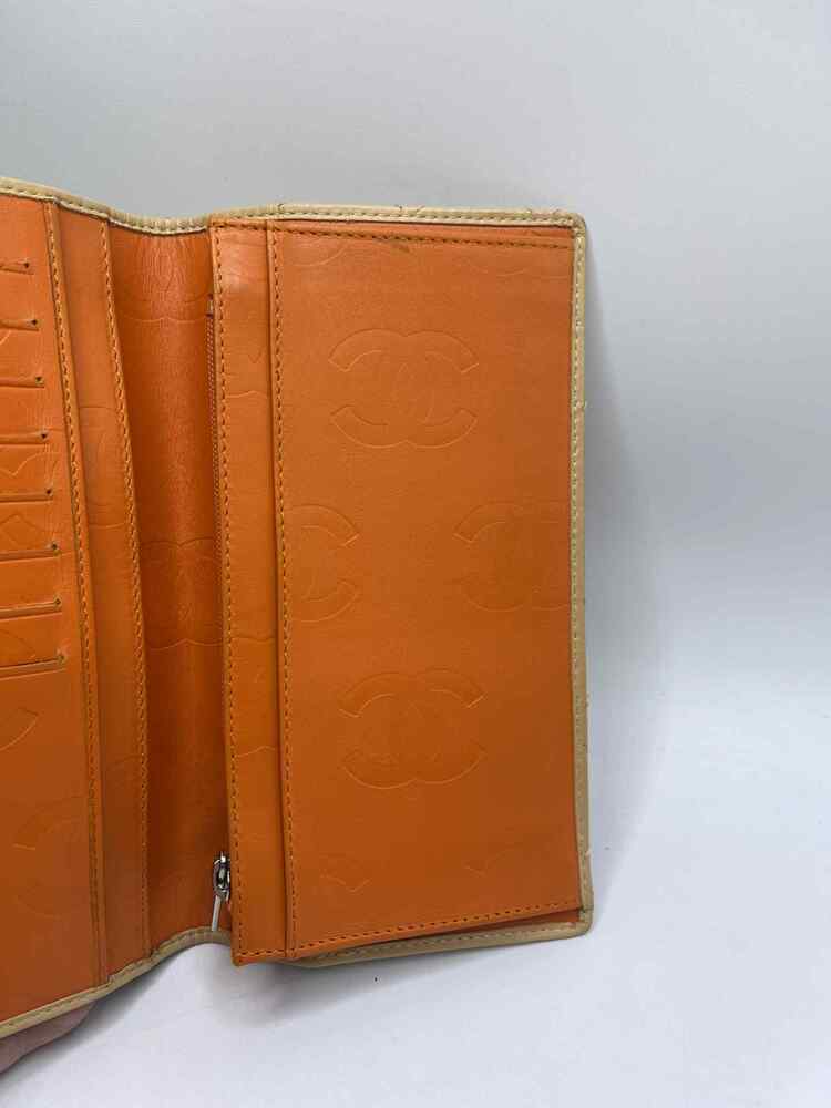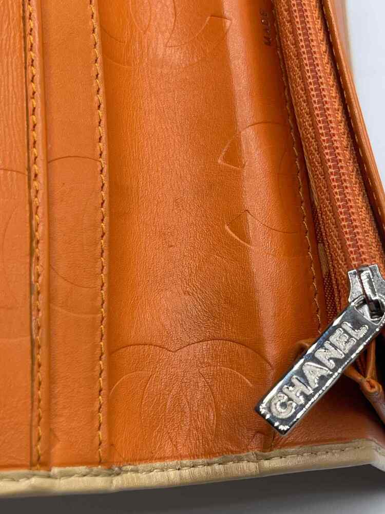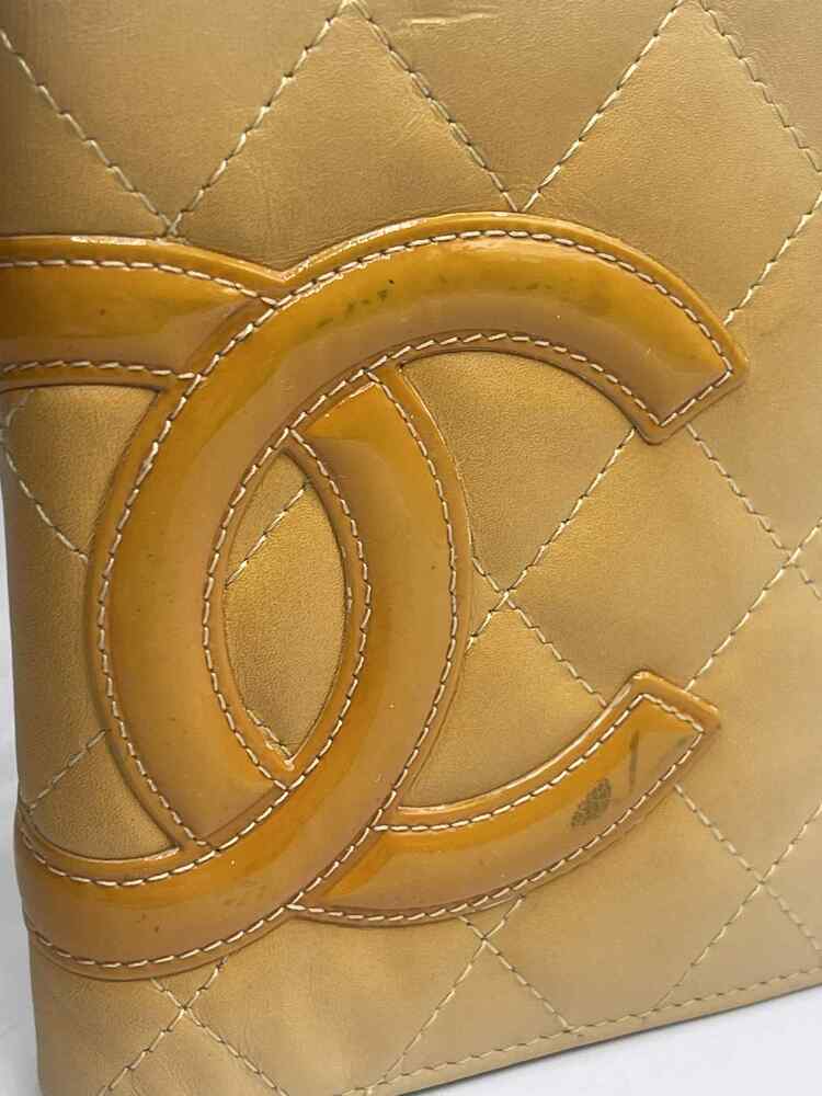 The Chanel Cambon Line Matelasse Long Wallet Bi-fold is in used condition. The wallet has discoloration round the CC logo. The exterior cornors and the CC logo has scuffing. The wallet has scratches and scuffs on the interior and exterior. It comes with the Chanel Card it was original sold with. The overall condition of the wallet is a (C).