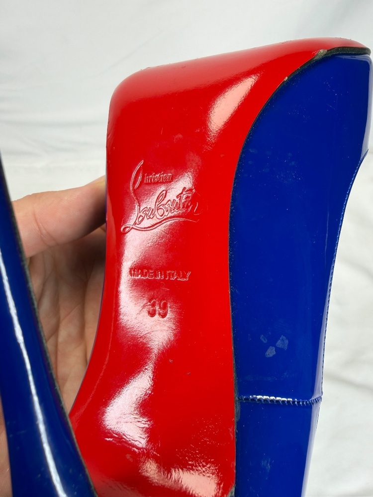 Apparel Christian Louboutin So Kate 120 Blue Patent Leather US 9 in box with extra tips. In good shape with some wear on soles.