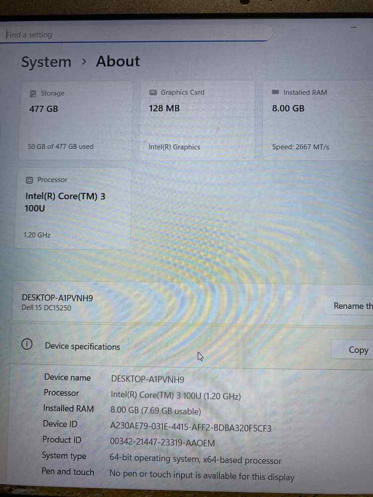 Dell 15 DC15250 Intel Core 3-100U 8GB RAM 512GB SSD With 120Hz Screen