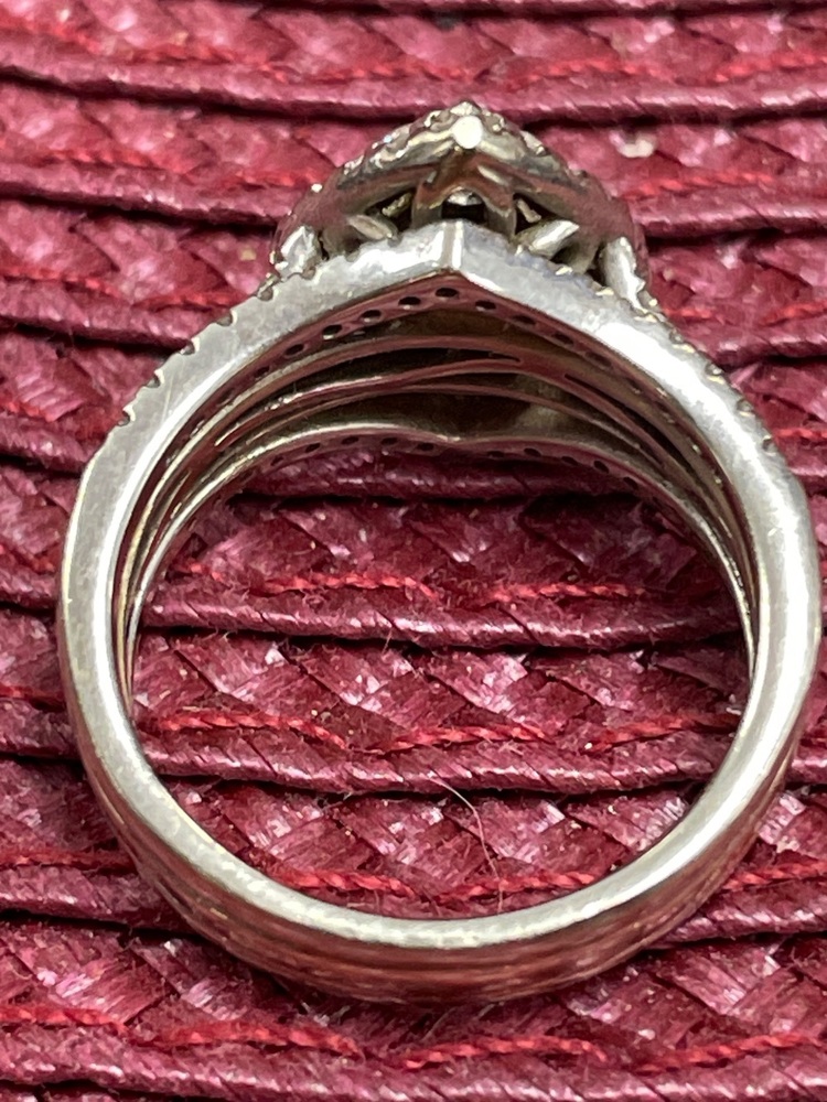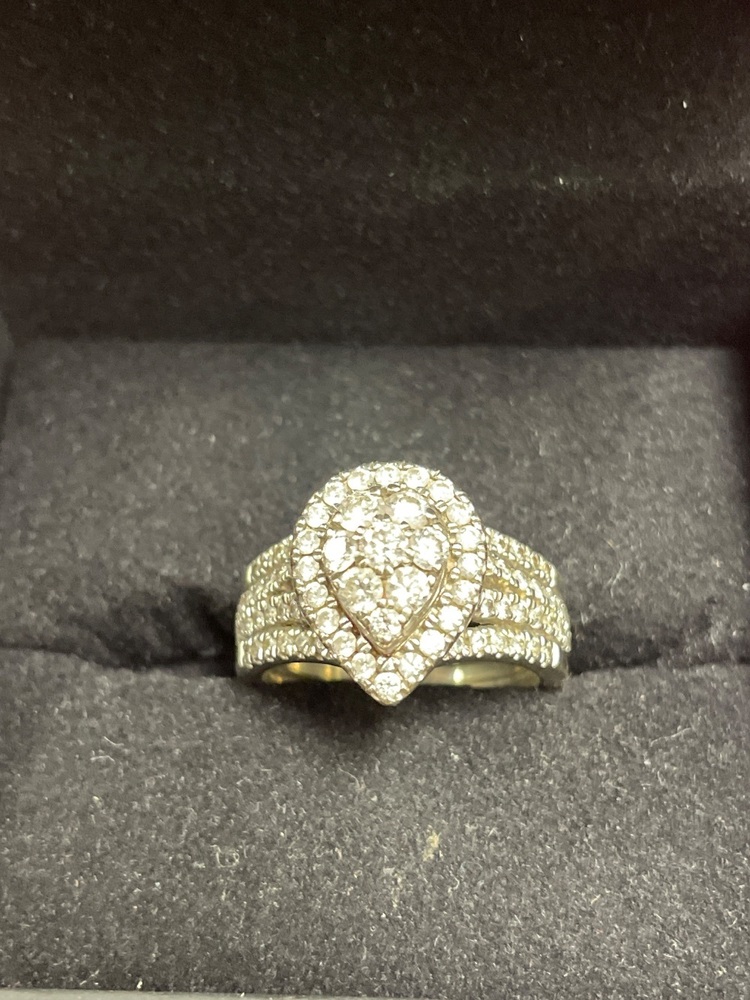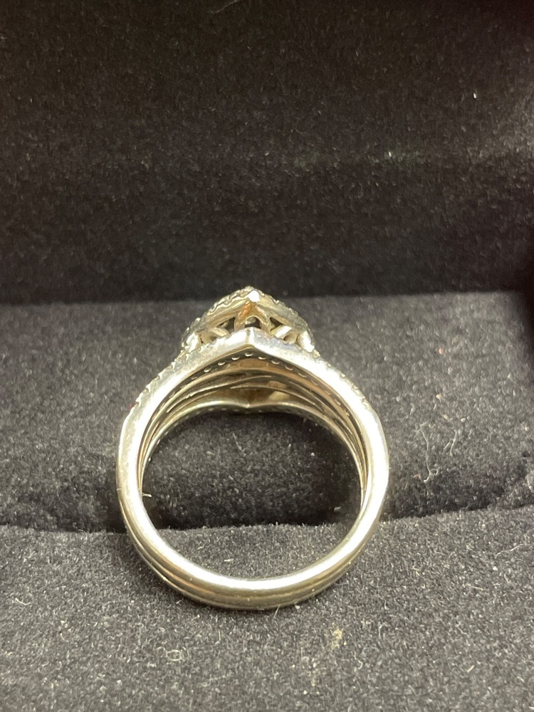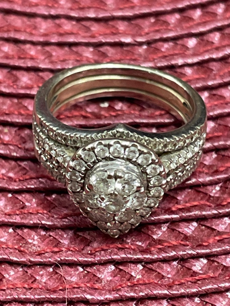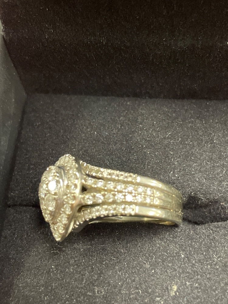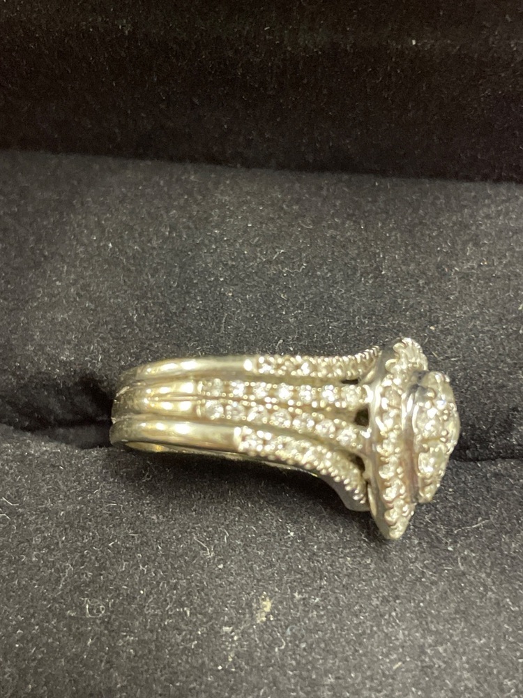 This is a Preowned Diamond Ring set in White Gold and Size 7 - 10K . Very Nice Ring in Very Good Condition.