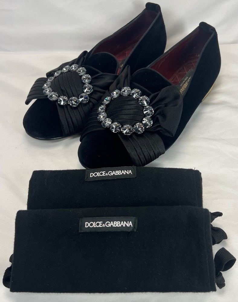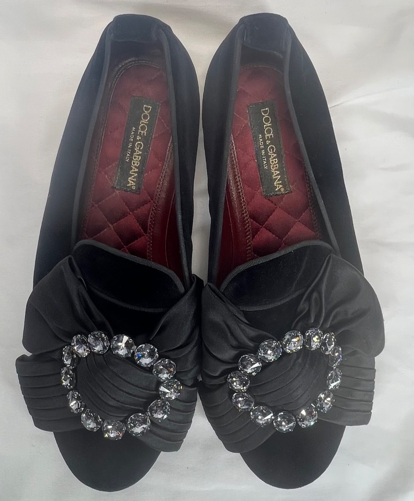 Dolce & Gabaana Baroque Crystal Ribbon Velvet Loafer Vaticano