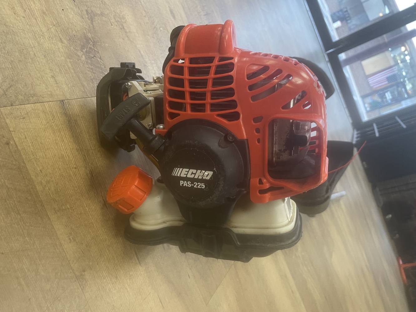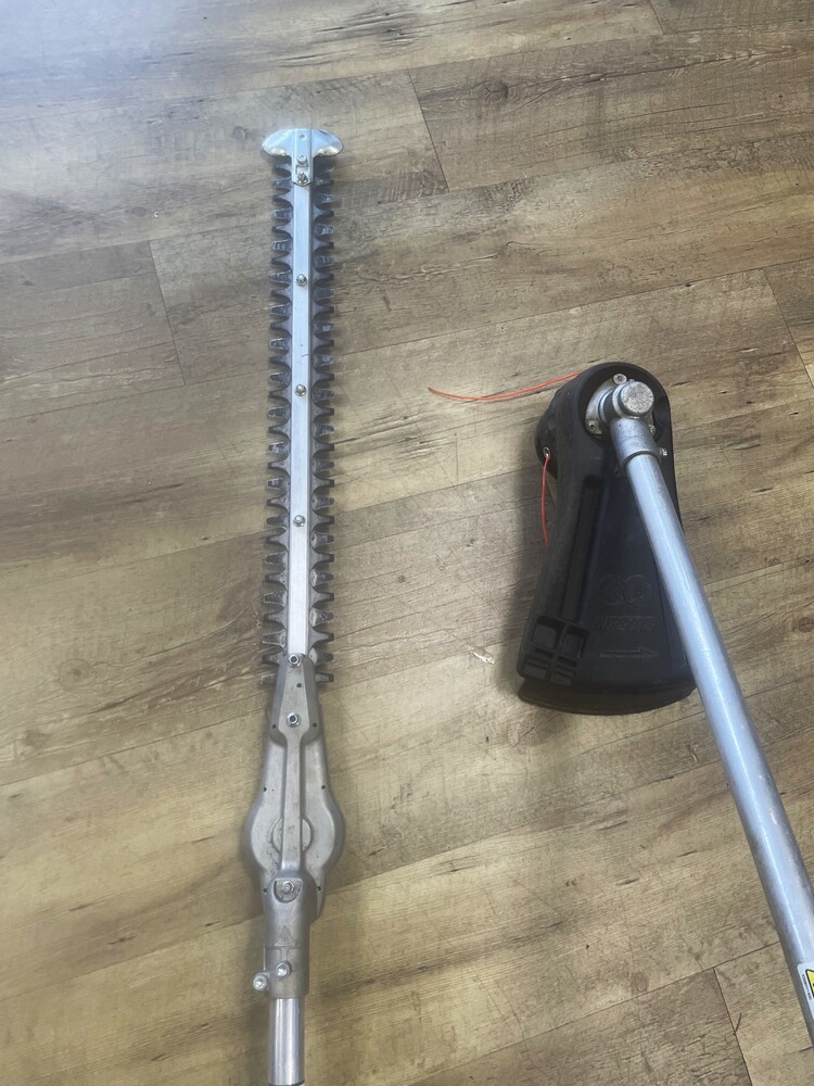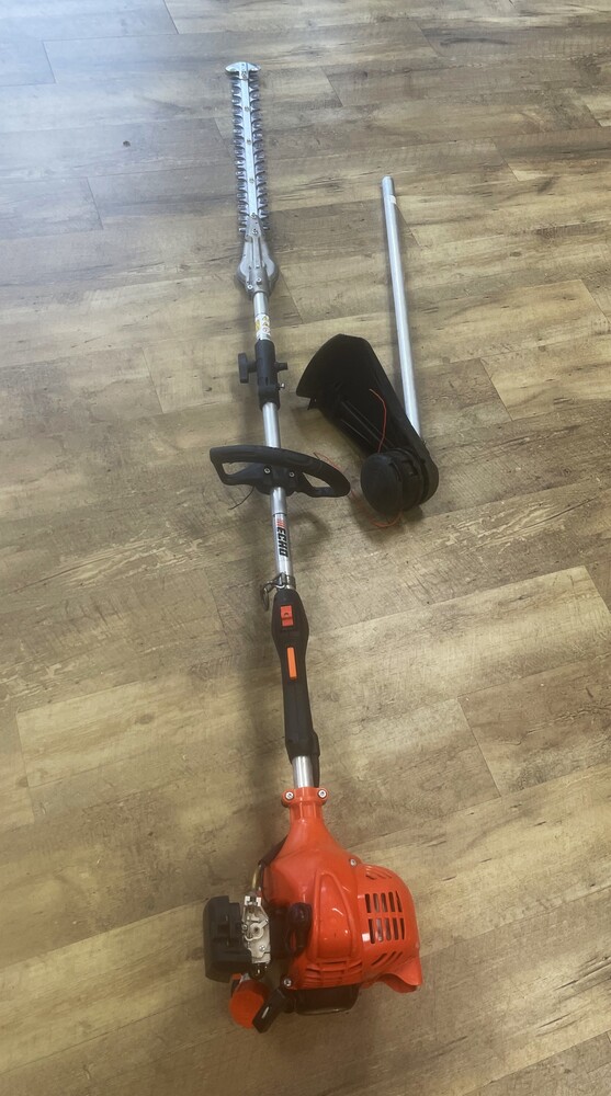This is a preowned Echo PAS-225 Hedger w Weed Eater Attachment . Made March 2025 in Good Working Condition does show normal signs of usage. Such as marrs - scratches - wear marks and stains.
