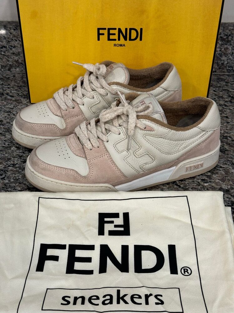 Fendi Match Sneaker Fendi Logo Sneakers White / Pink Size 7E w/ Box & Dust Bag - VWG 331178