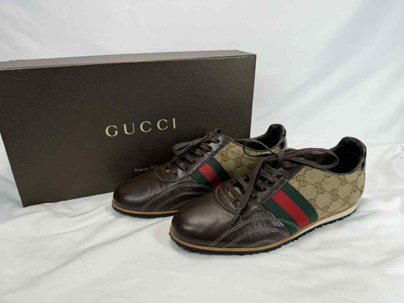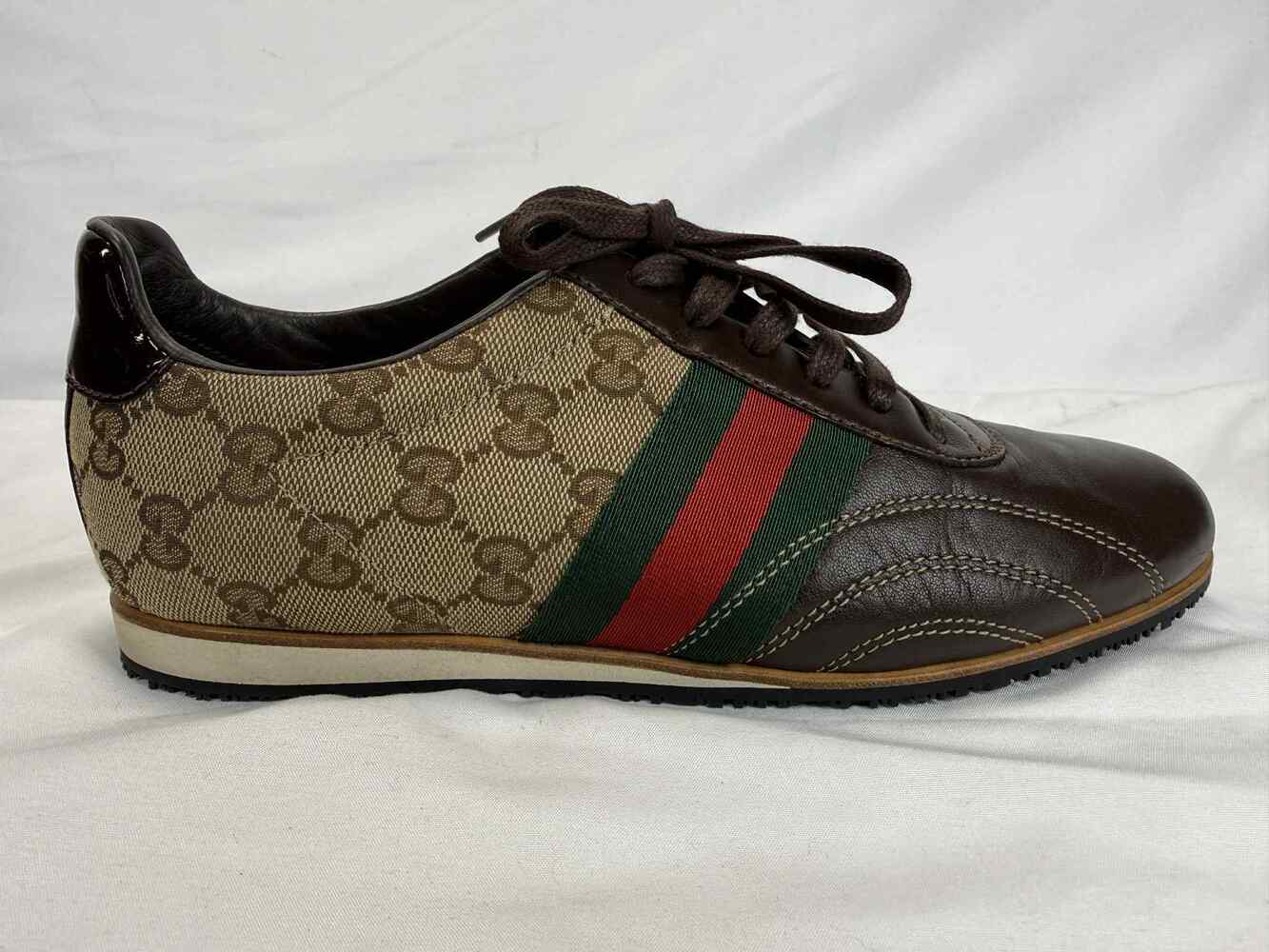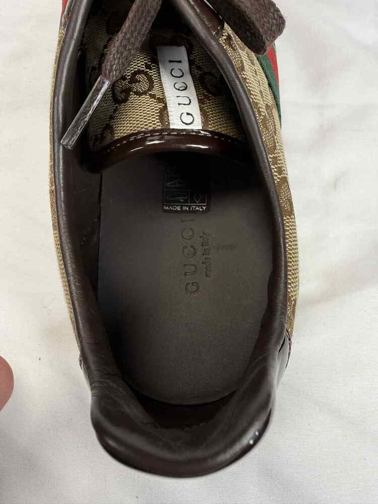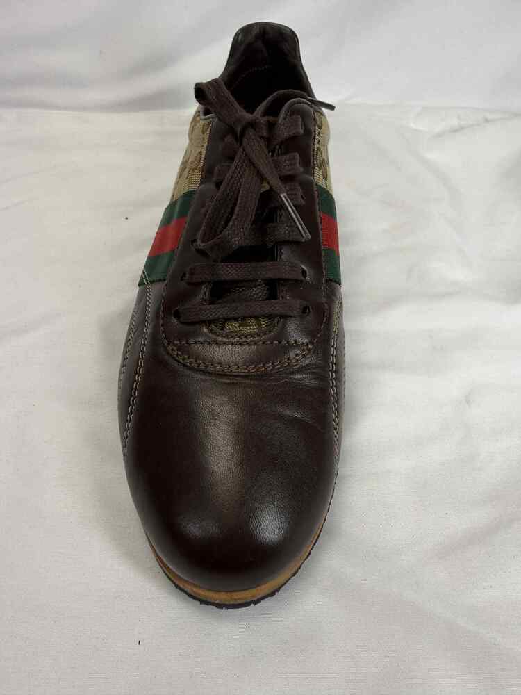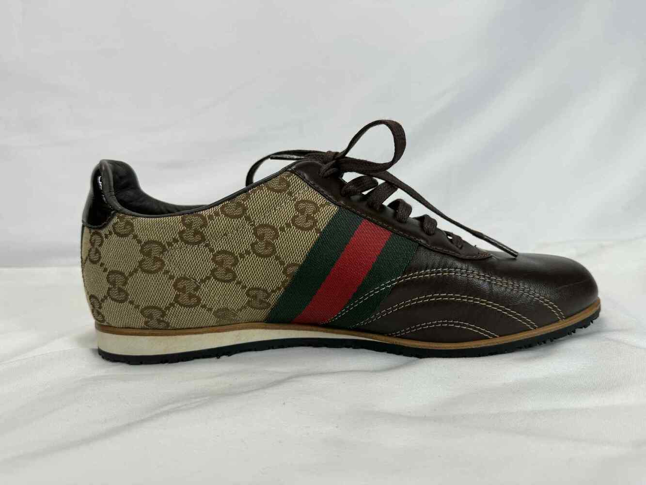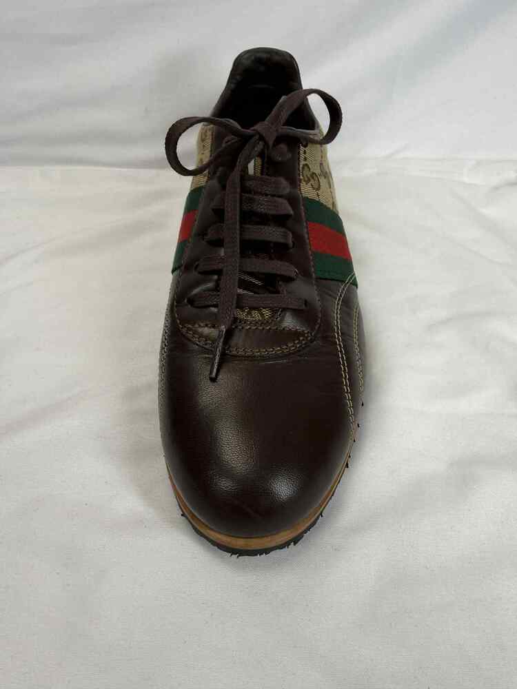 Gucci Ace GG Monogram Brown Leather Shoes Trainers Sneakers US 8 SPB-TS 357026