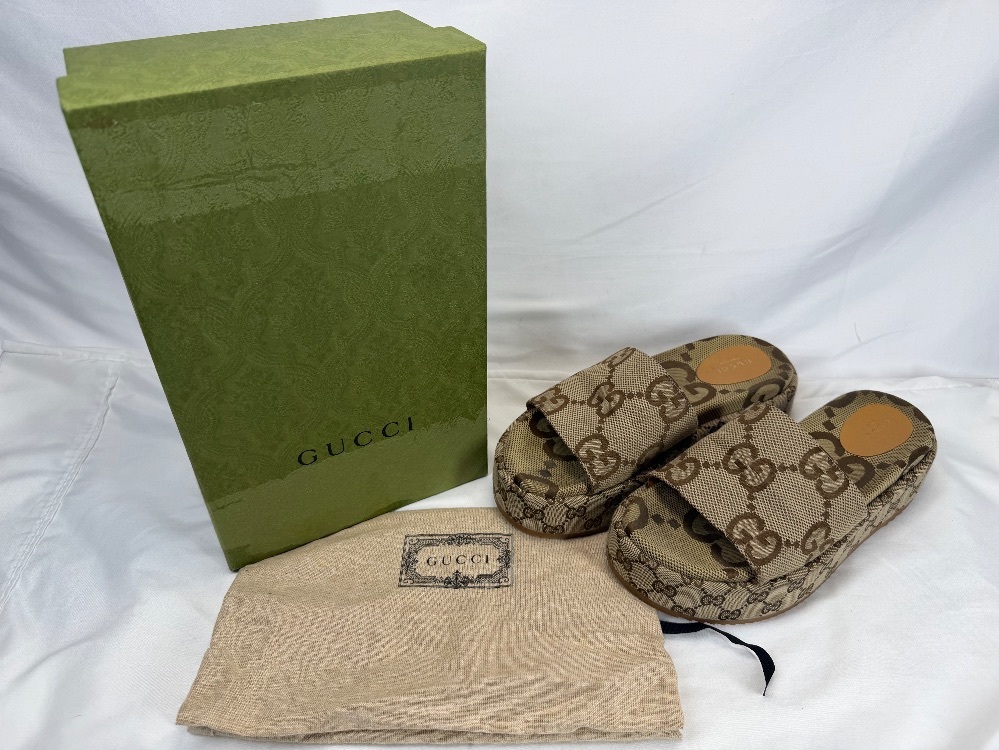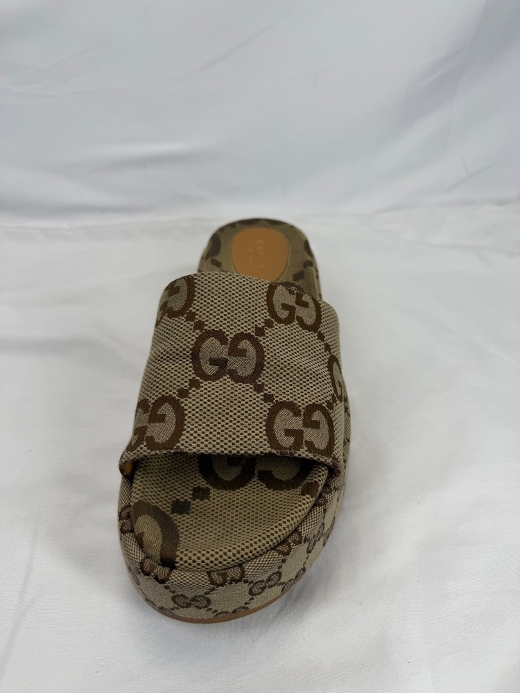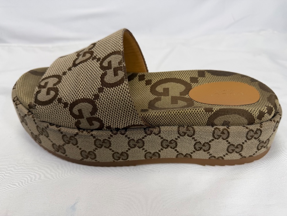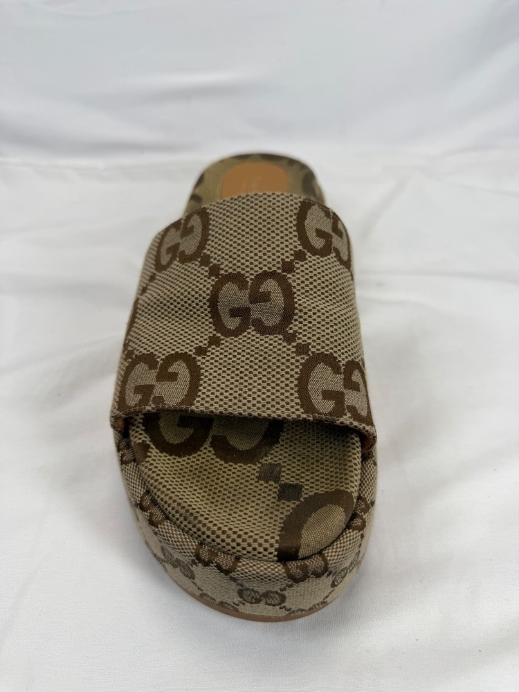 Apparel Shoes Gucci Angelina Maxi GG Platform Sandals US 10 in good shape soles have some damage shown in photos. Comes with box and dust bags.