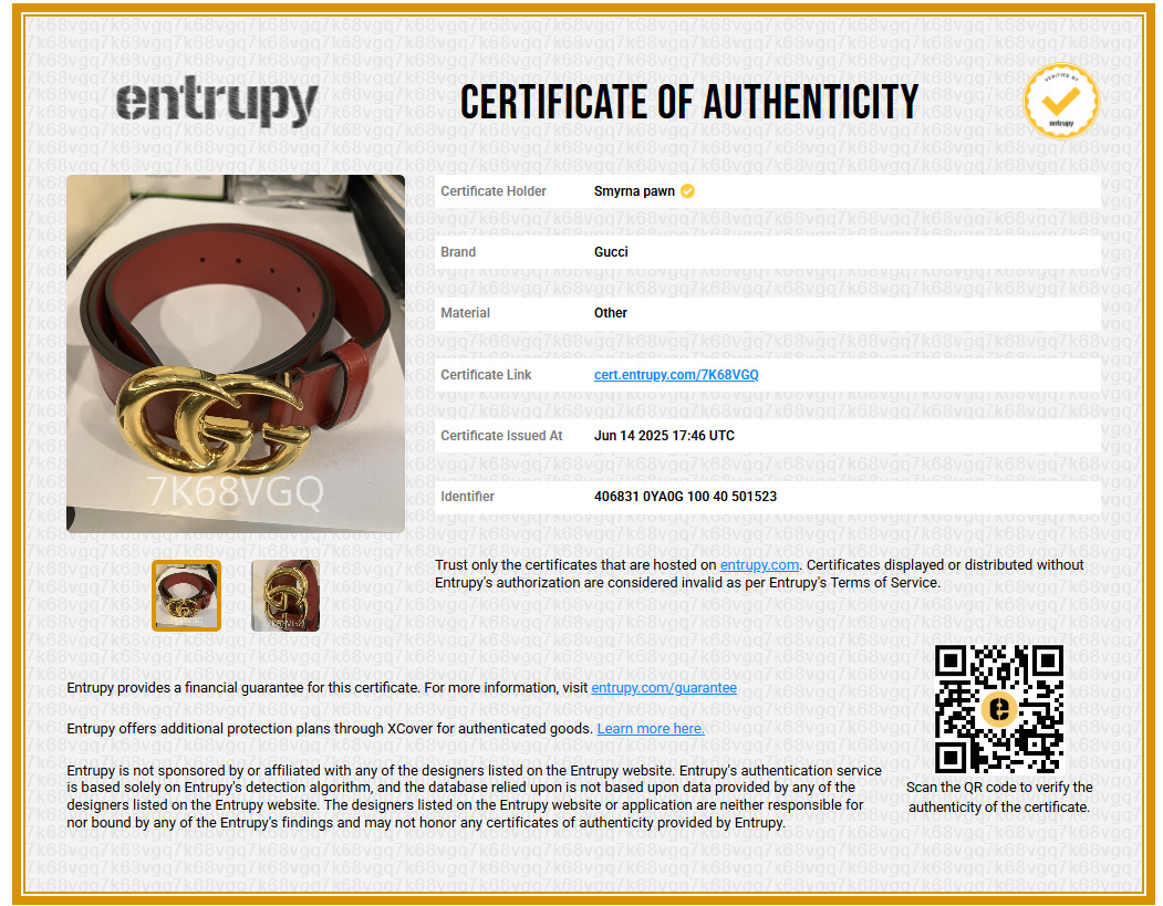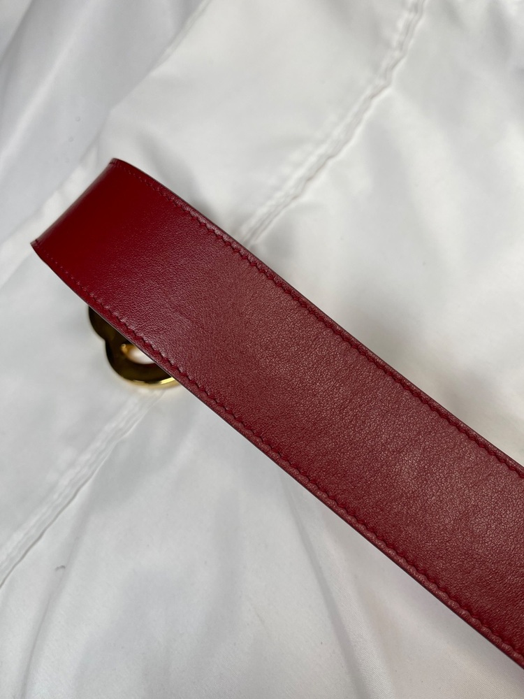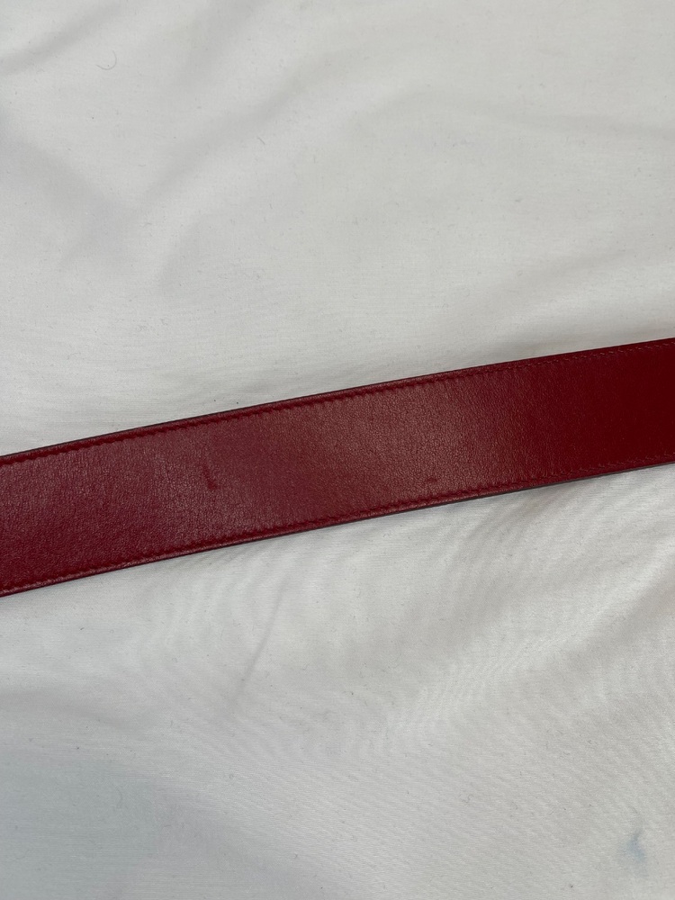 This is a nice used belt in good used condition. Belt only. No box or dust cover. There are some blemishes and scuffs on the buckel. There are a few scratches and scuffs on the belt itself, but are minor. There is some wear to the surface near the belt buckel. Authenticated through entrupy. Please see pictures for details.