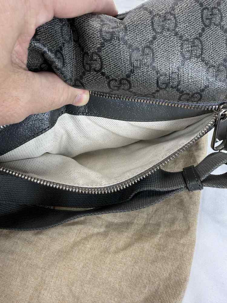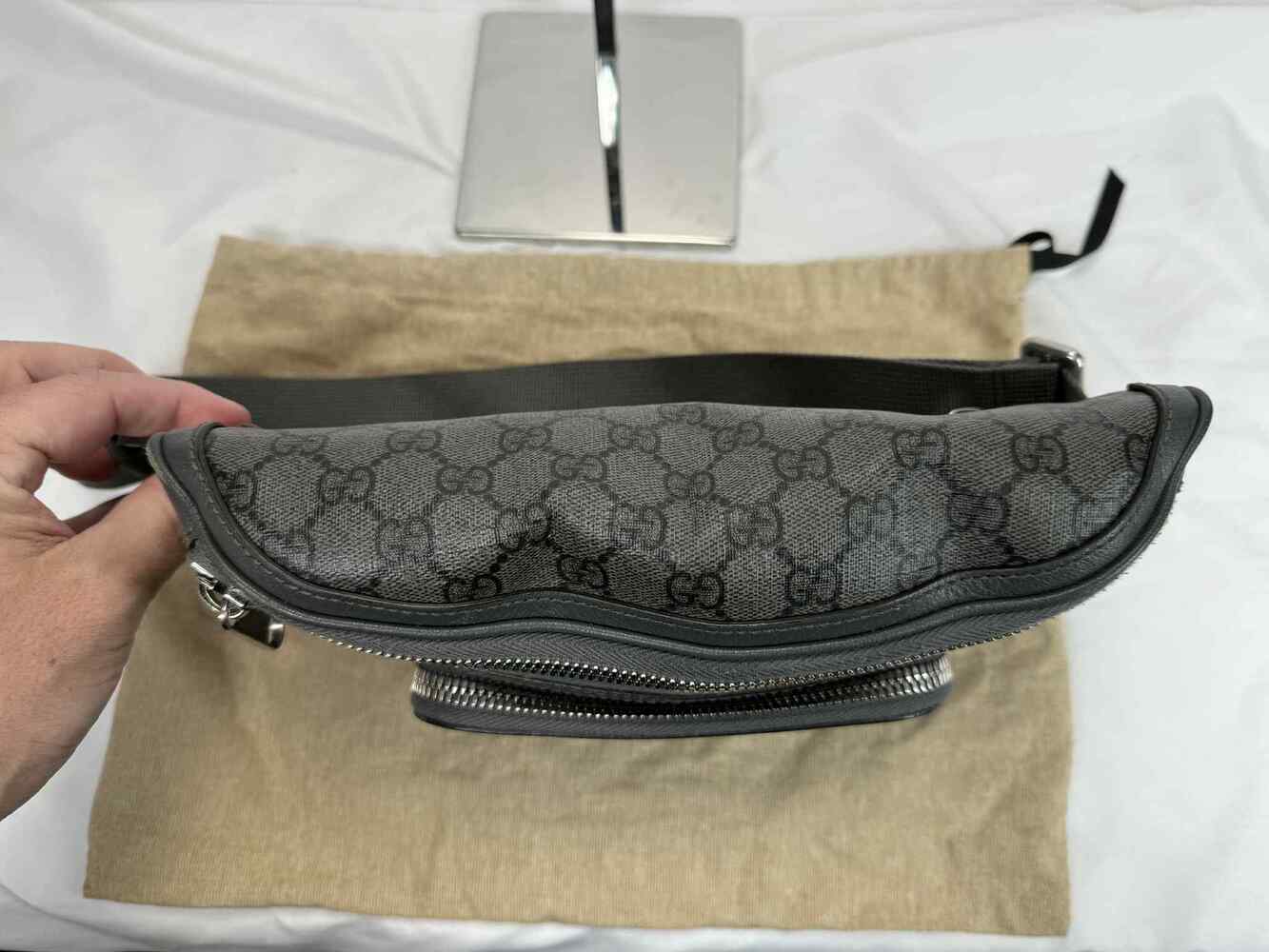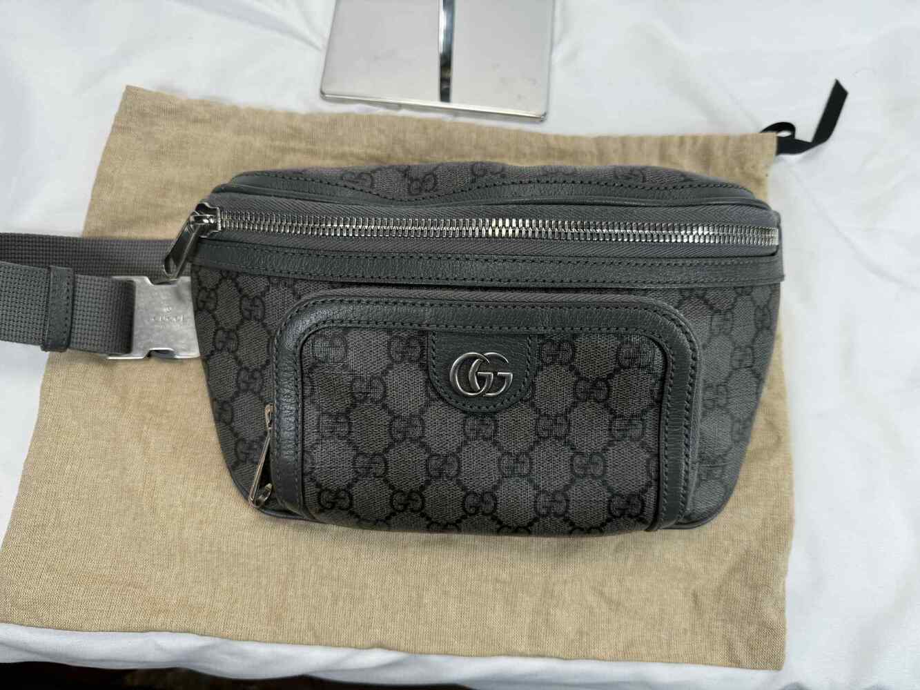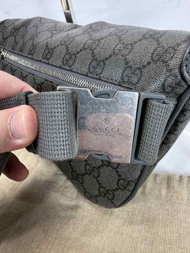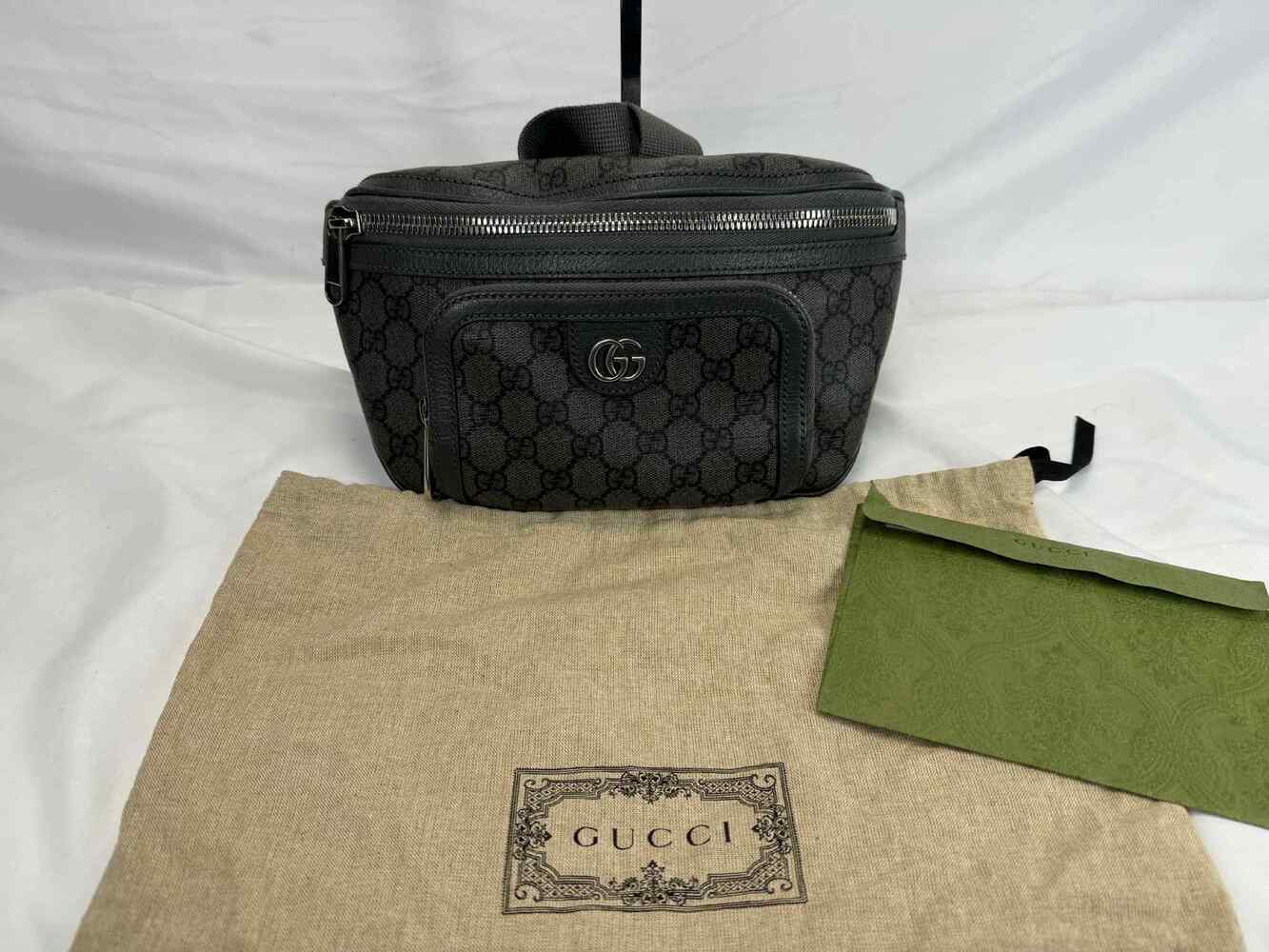 - The Gucci color palette is constantly evolving to include more refined hues. New colorways and combinations result in the reinvention of signature styles with a contemporary feel. This Ophidia belt beg is presented in a grey and black variation of the GG Supreme canvas, reflecting Gucci's ability to modernize signature design elements.