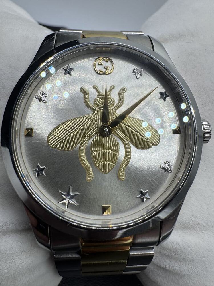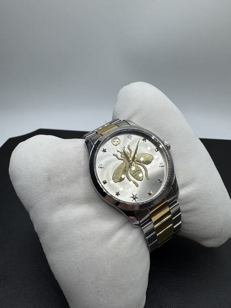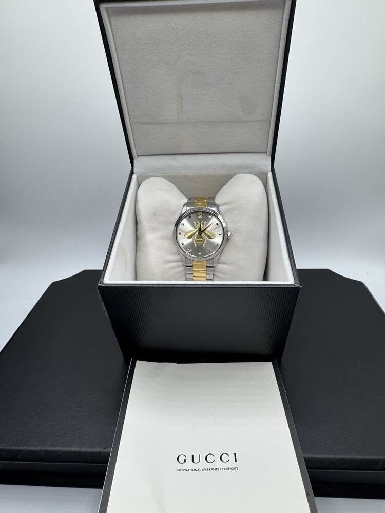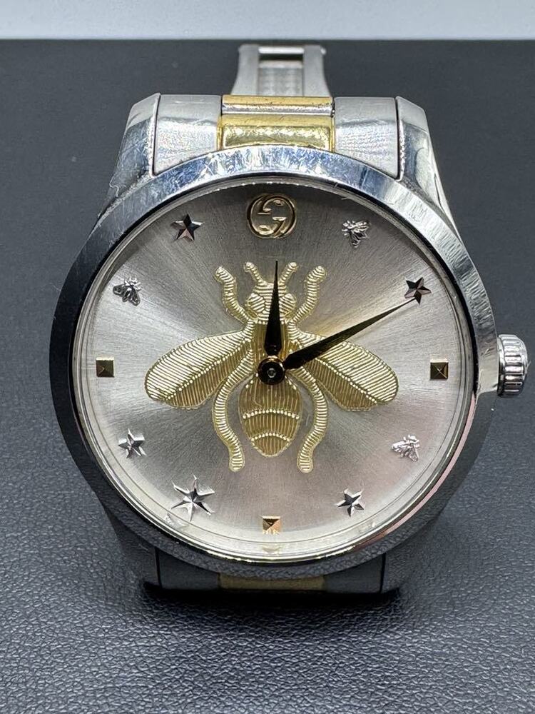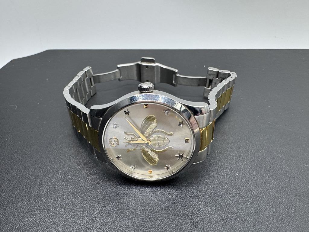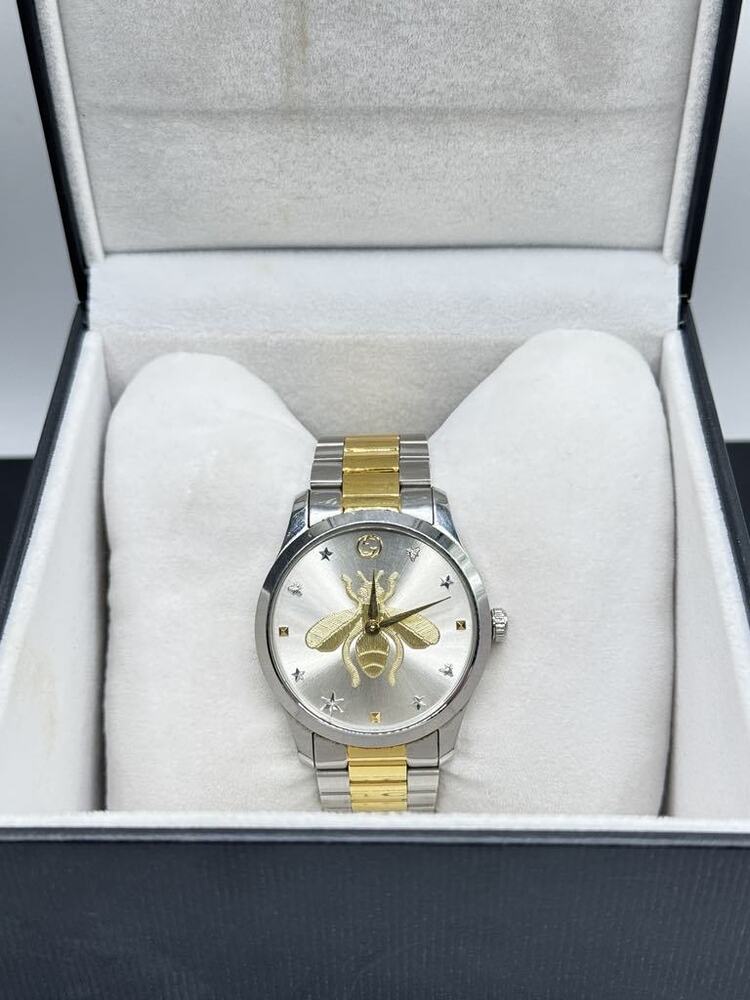 Watches Wrist Gucci 126.4 w/ box, pillow, gucci timeless bee two tone plated band, smooth bezel. 6.75 IN BRACELET