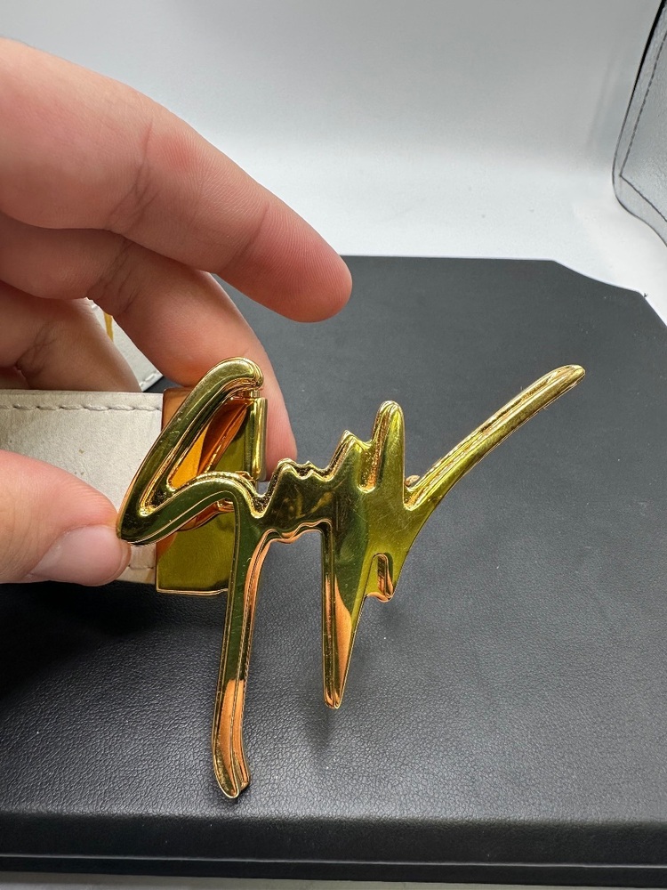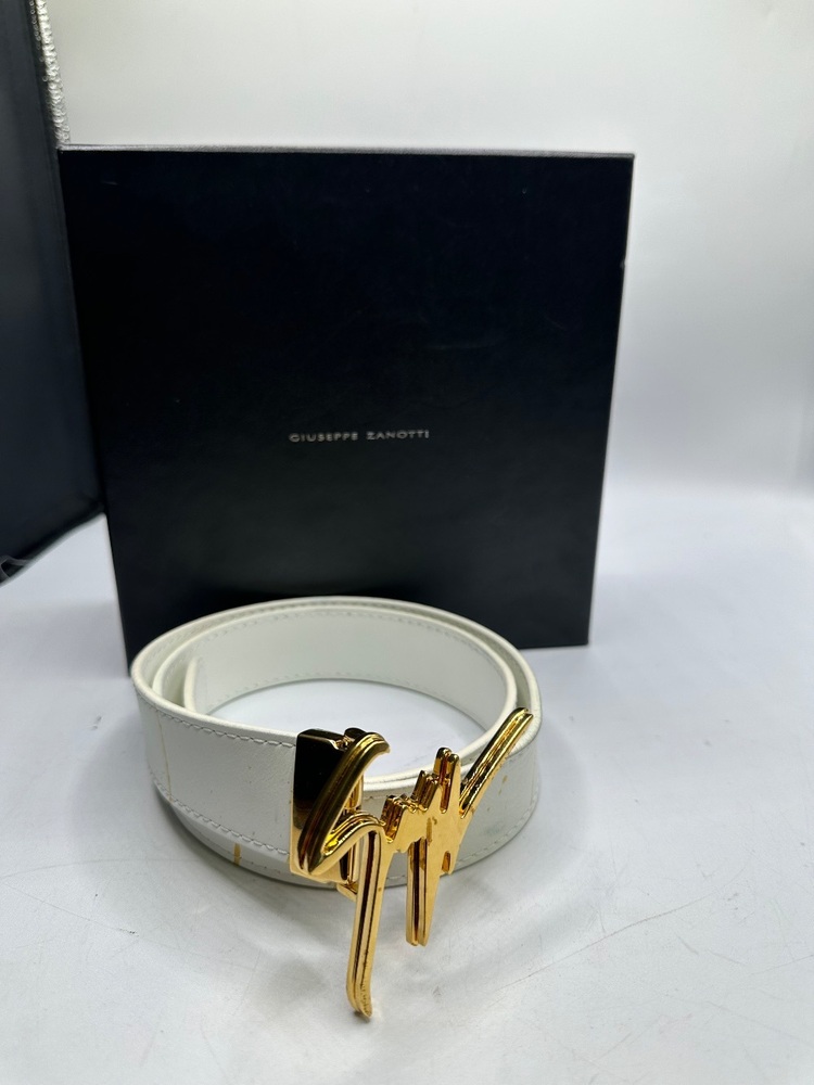 Apparel Belt Guiseppe Zanotti White and gold leather belt in box with dustbag