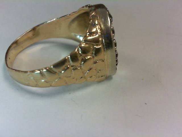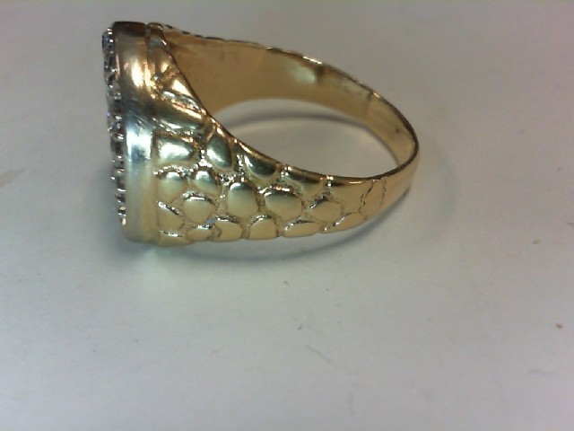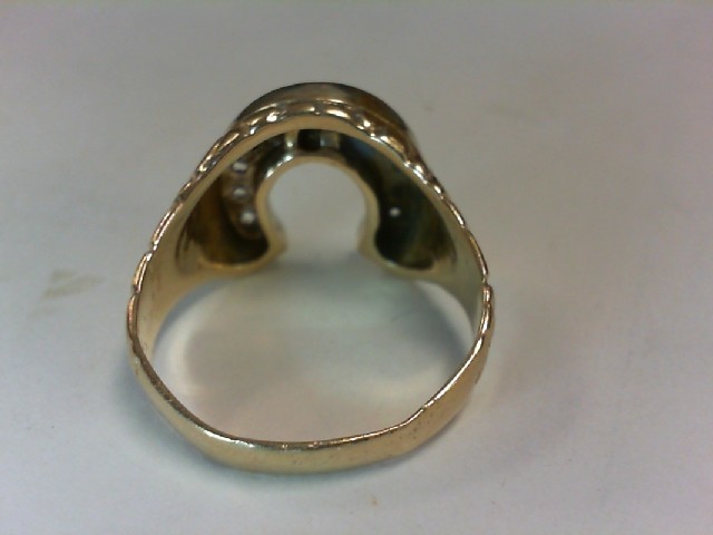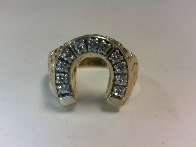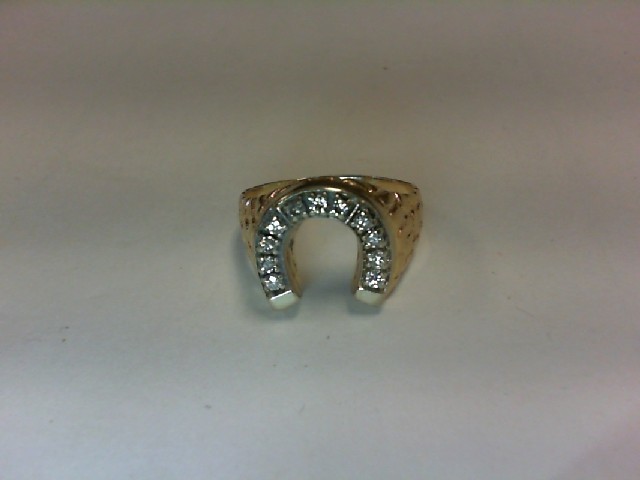 Horseshoe Ring with Gold Nugget Design Band and Diamonds - YG - SZ 12 - 14K. 8.2g