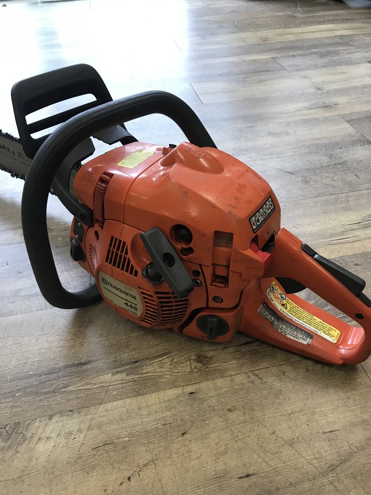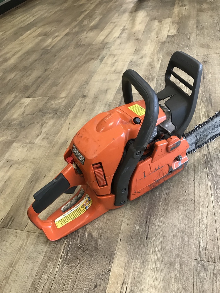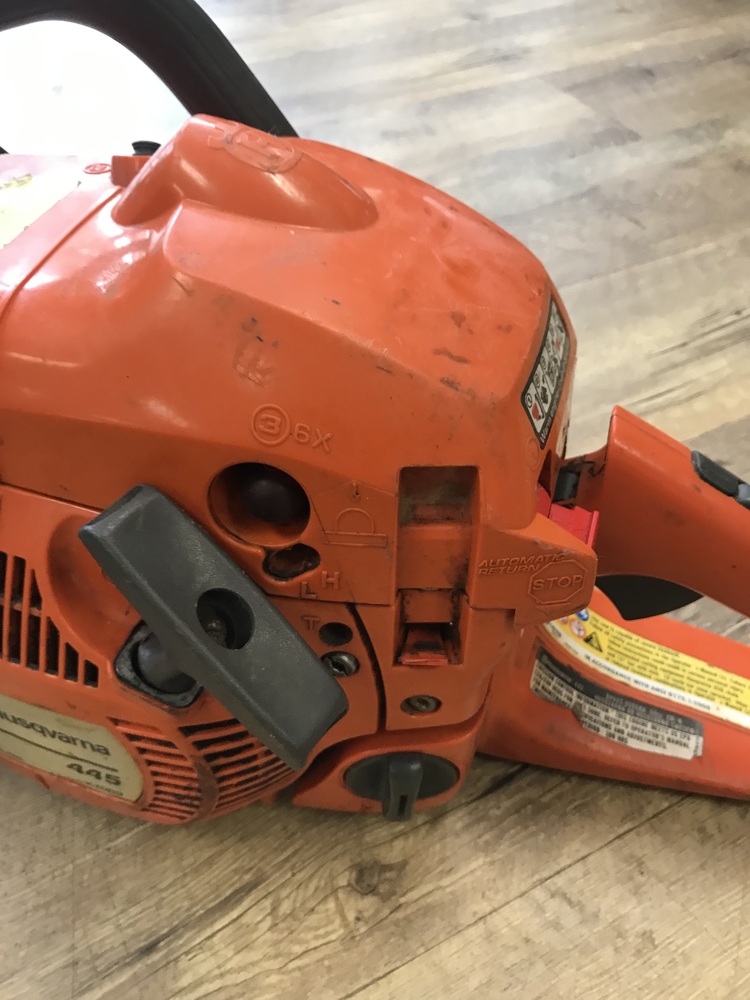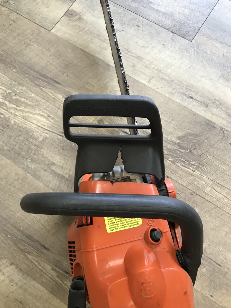 This is a good running chainsaw that runs strong. The chain break does not work on this saw. There is one clip broken on the saw. Dings and marks are present from normal use. The chain break lever does have a cut/break in it. Please see pictures for details.