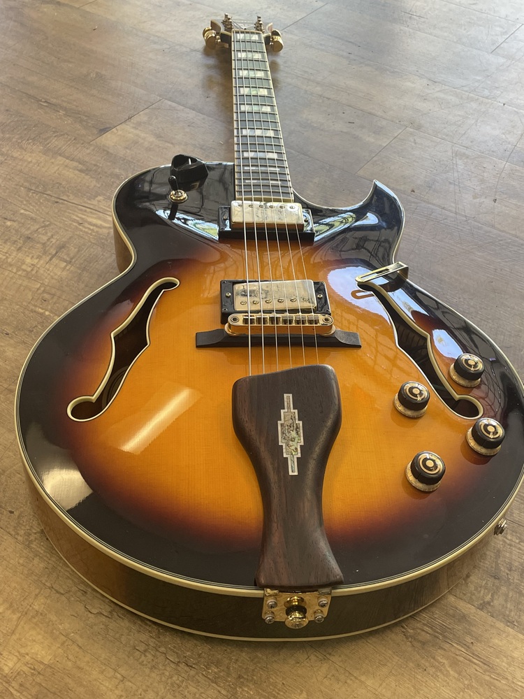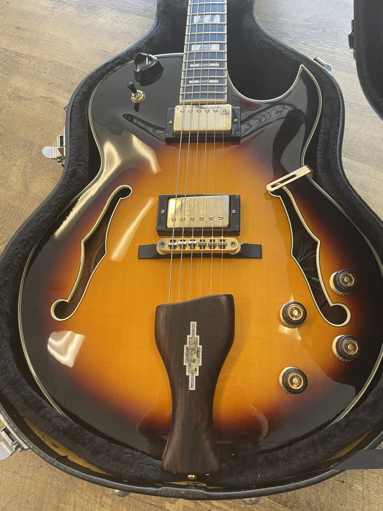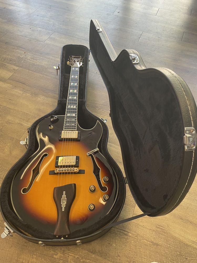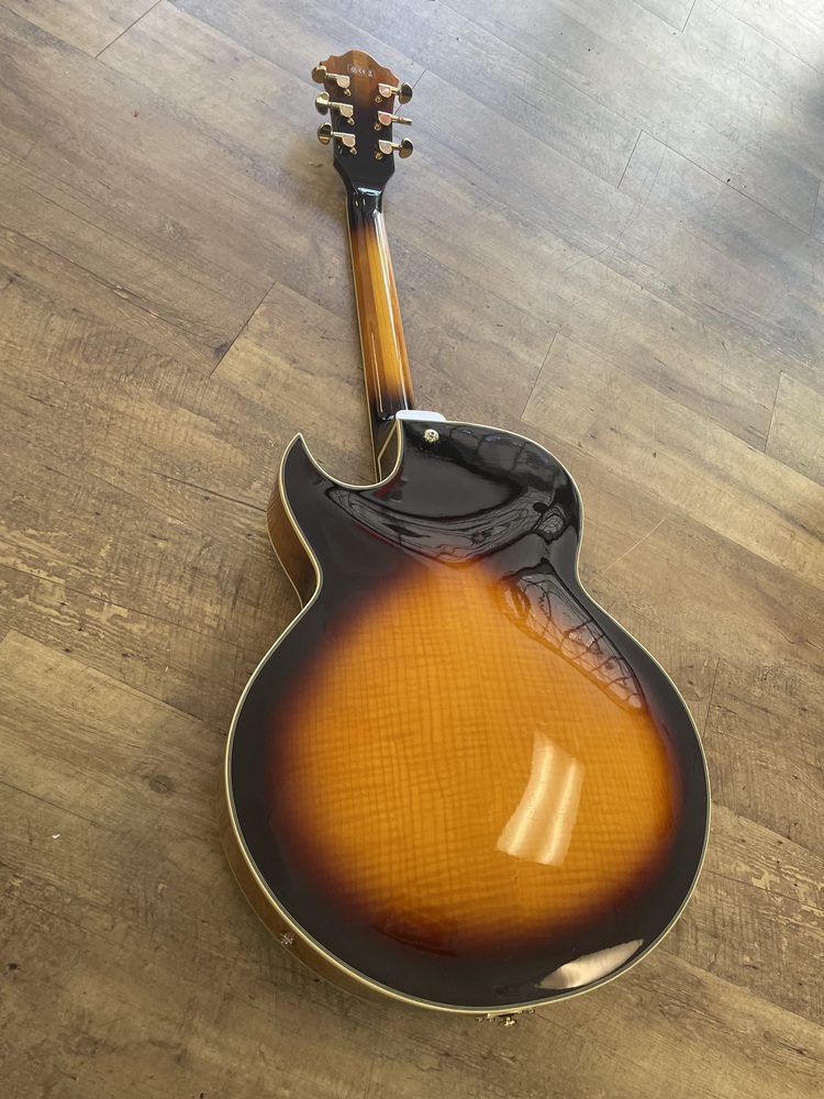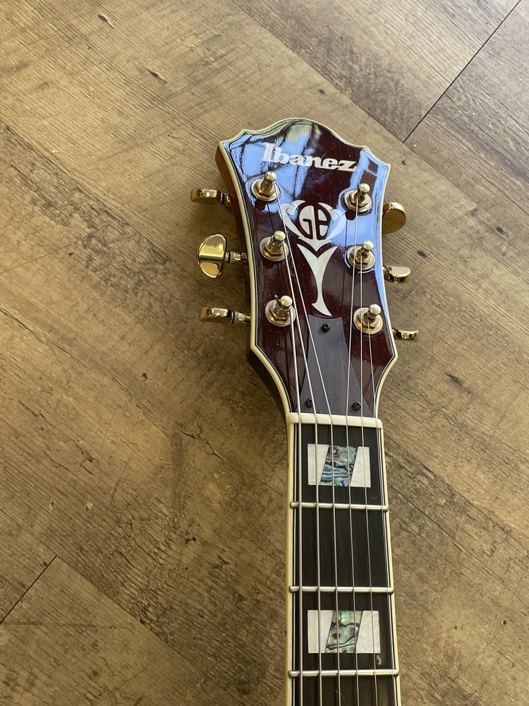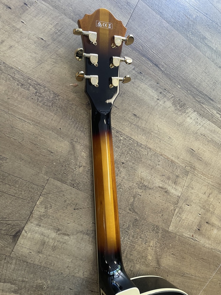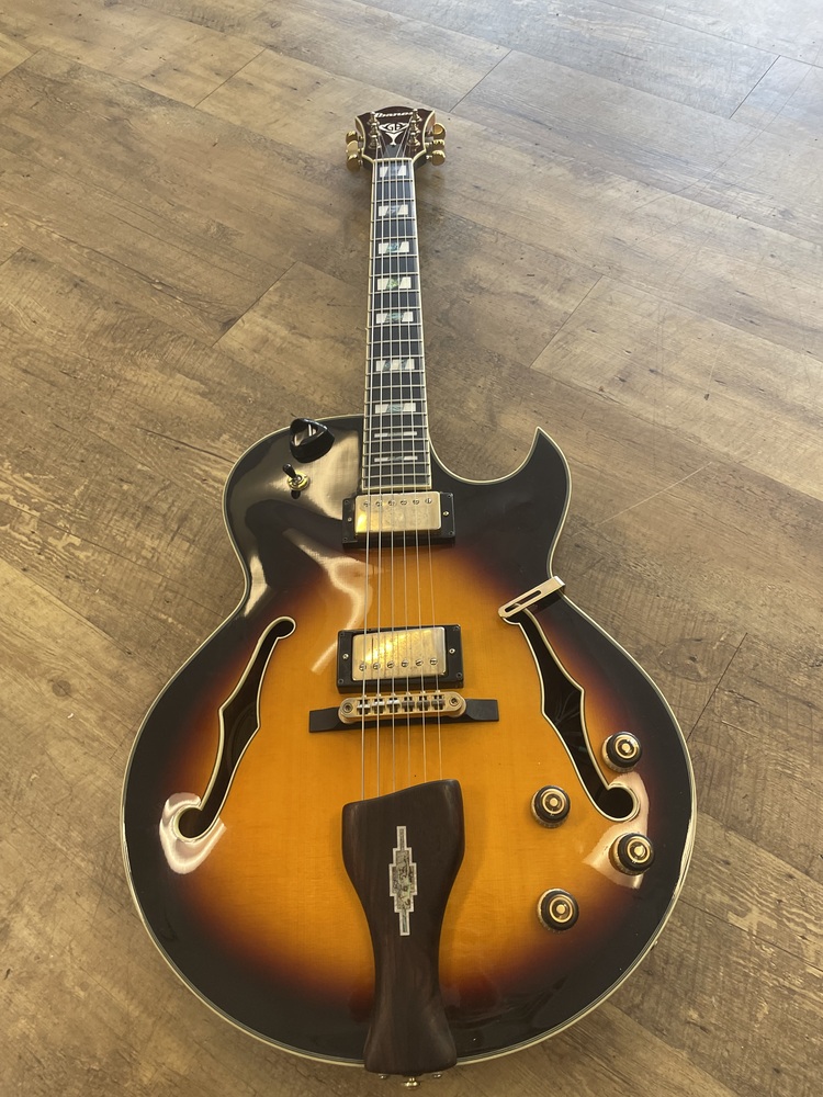 This is a preowned Guitar that is in very good condition. Guitar comes with the hard case. Above the Toggle Switch is the coolest thing ever it a pick holder . (don't know how many it holds but quite a few). Unleash your inner maestro with the Ibanez LGB30-VYS-12-02 Sunburst Guitar. This instrument, swathed in a vibrant sunburst hue, marries classic design with modern precision. It promises a sound as rich and warm as its finish. Acoustic alchemy within your reach. Limited edition. A symphony starts with a single strum.