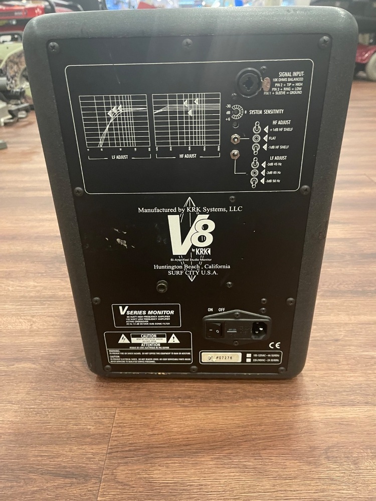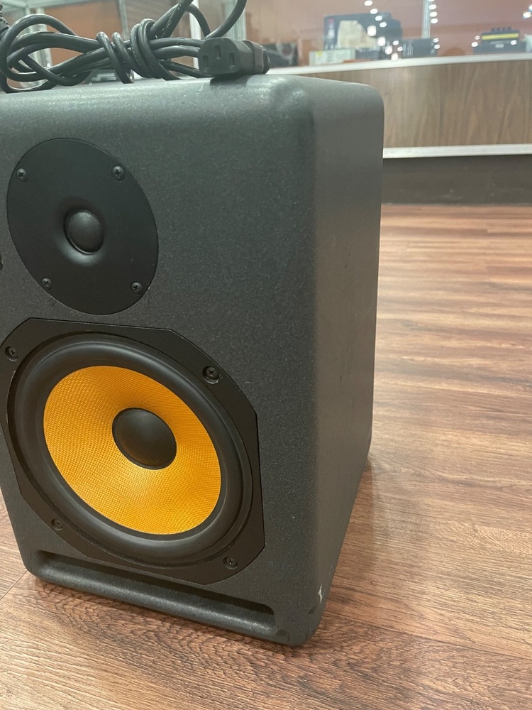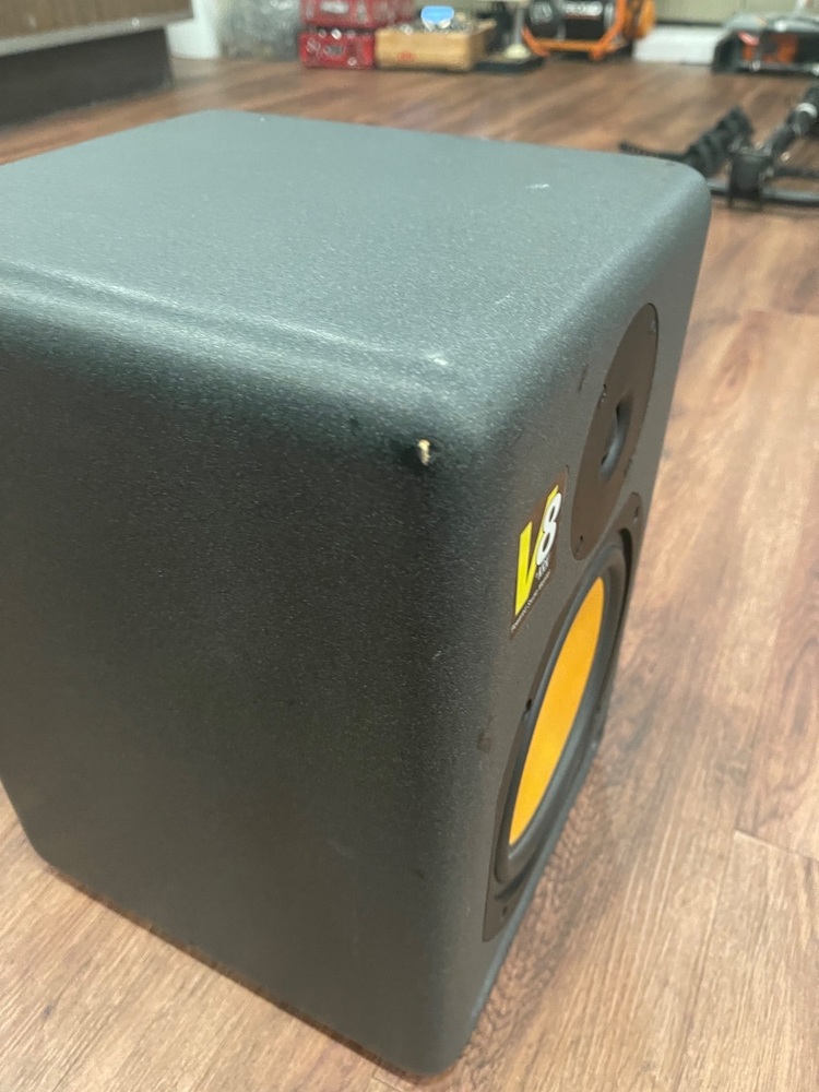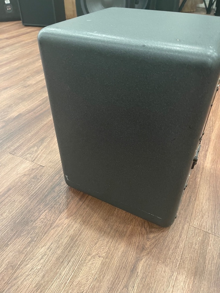 This is a good working speaker that functions as it should. Includes power cord. The speaker does show signs of wear. There are some dings and scratches present. There is some scuffs and dings to the corners. Please see pictures for details.