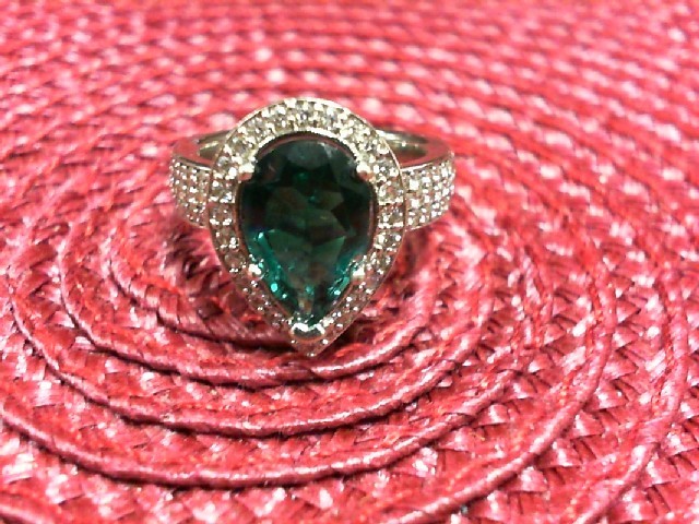 Lab Emerald & Diamond Ring - WG - Sz 7 - 14K - PPSKN
