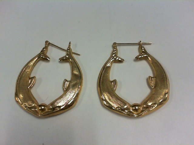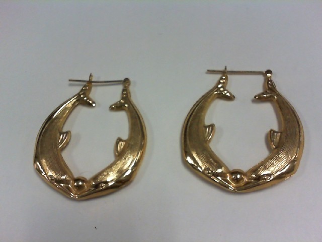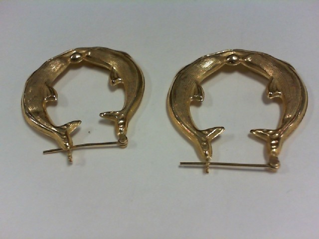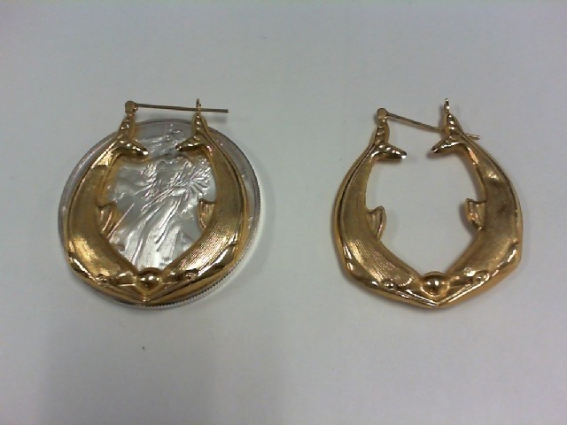Large Dolphin Earrings YG - 14K - with Small Ding in one of the Dolphins - Each Earring is roughly the size of a Silver Dollar as shown in the Picture. Price reflects the ding in the one.