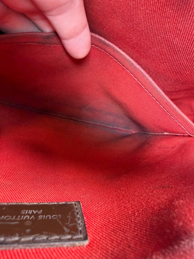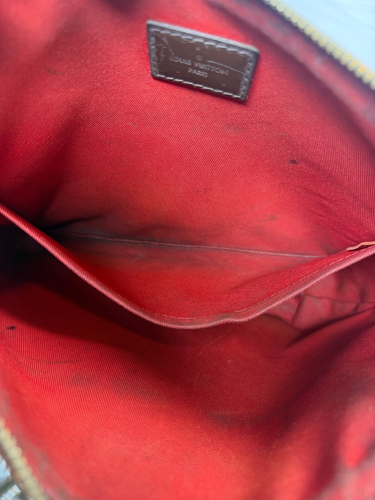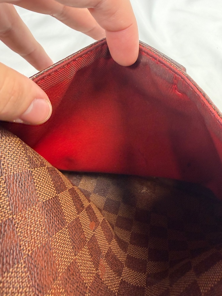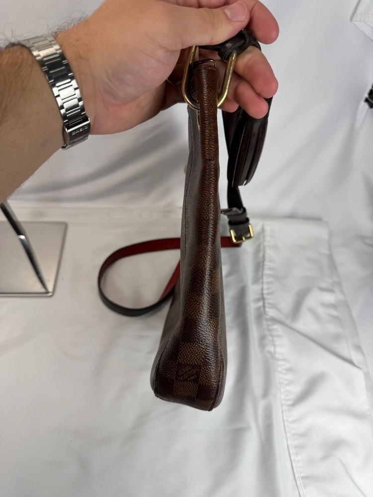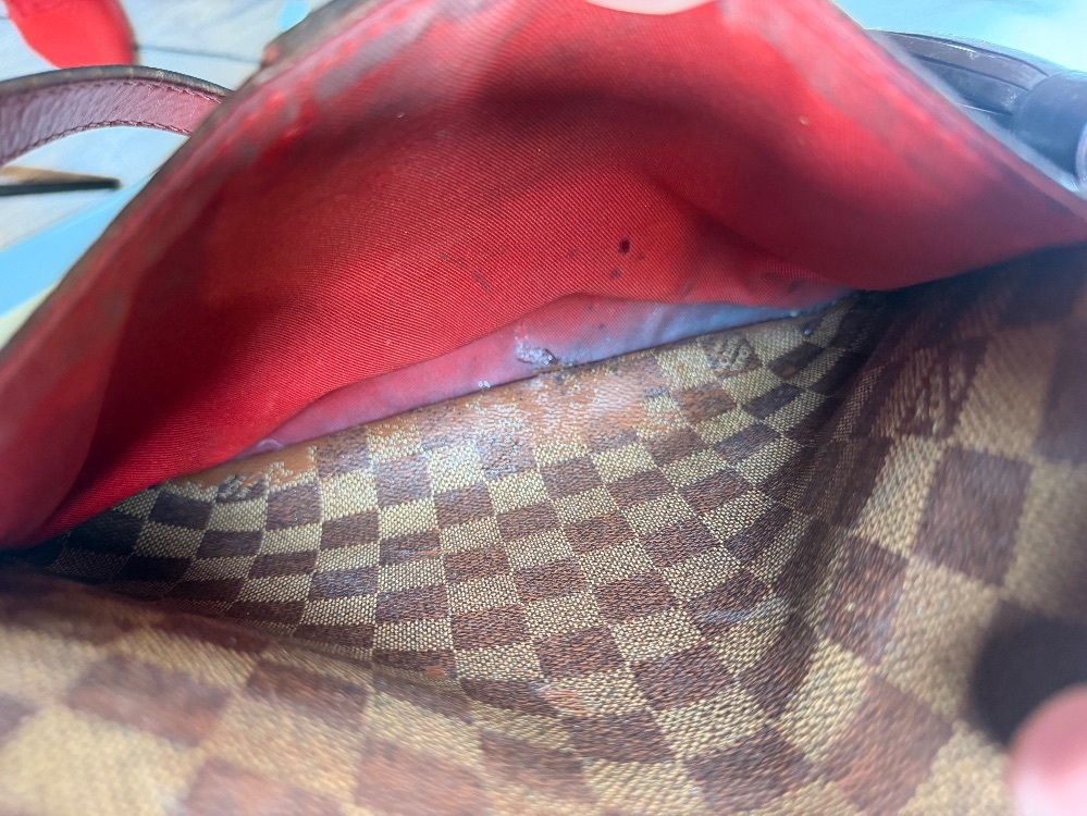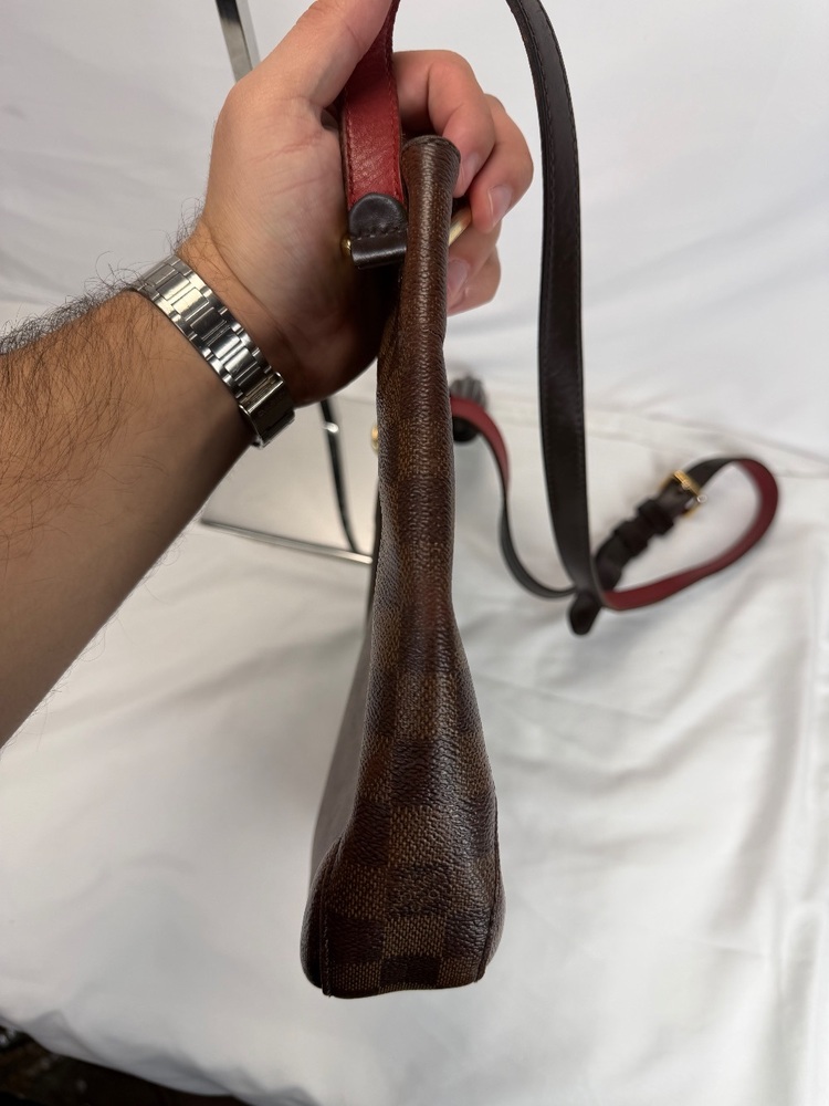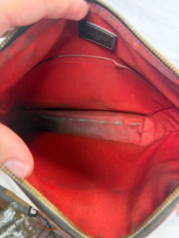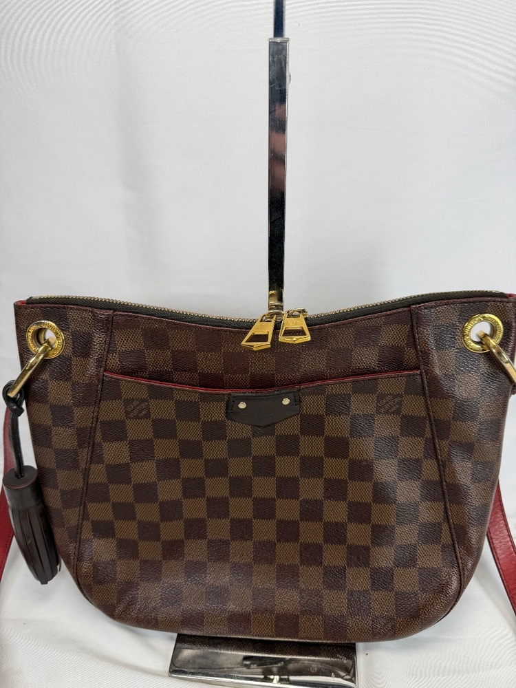 Apparel Purses Louis Vuitton Damier Ebene South Bank Besace bag only with strap rough condition multiple spots with stains and trim wear