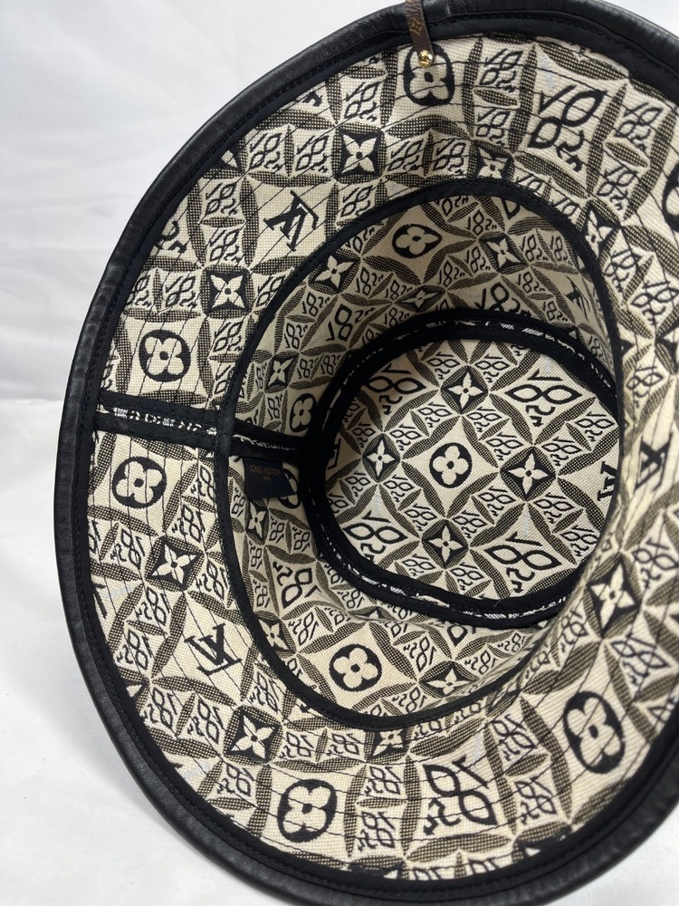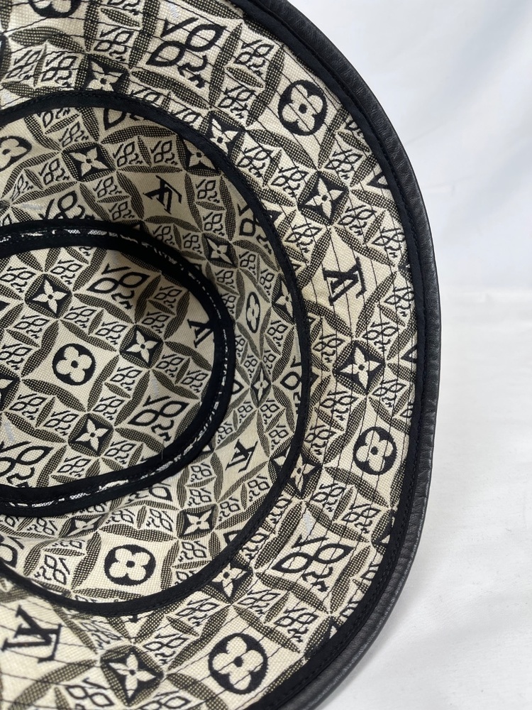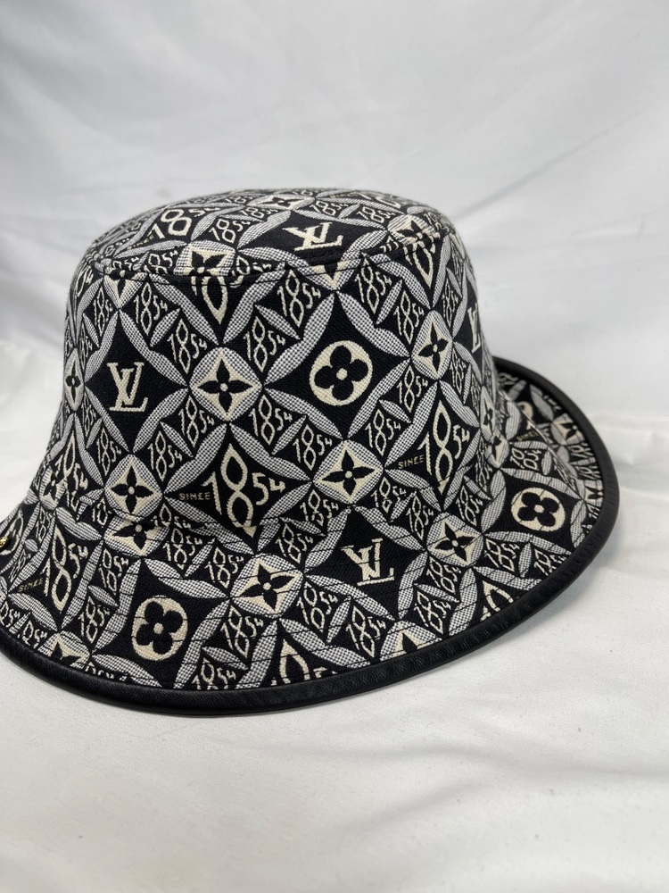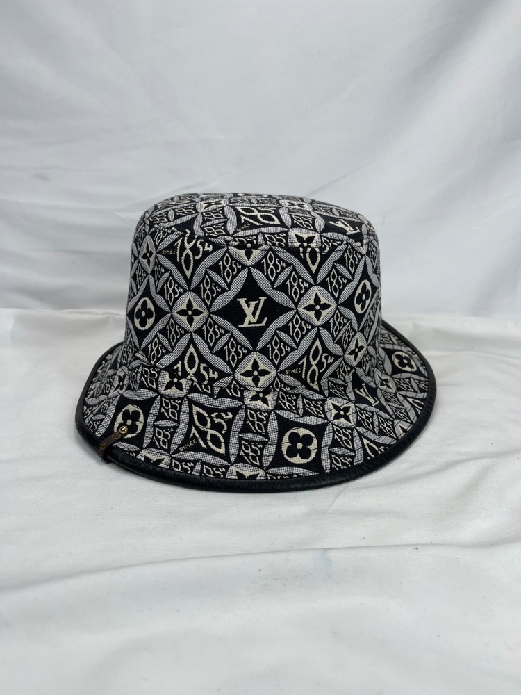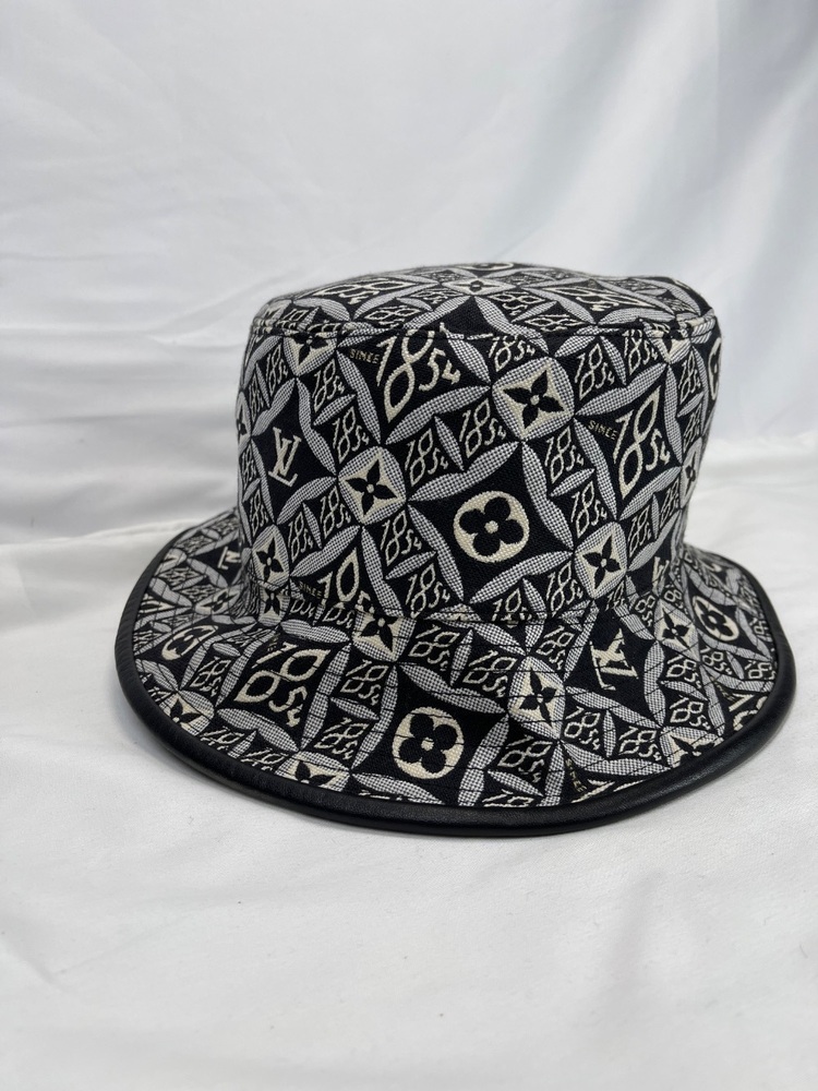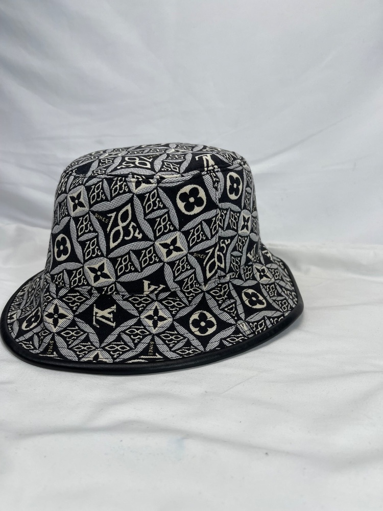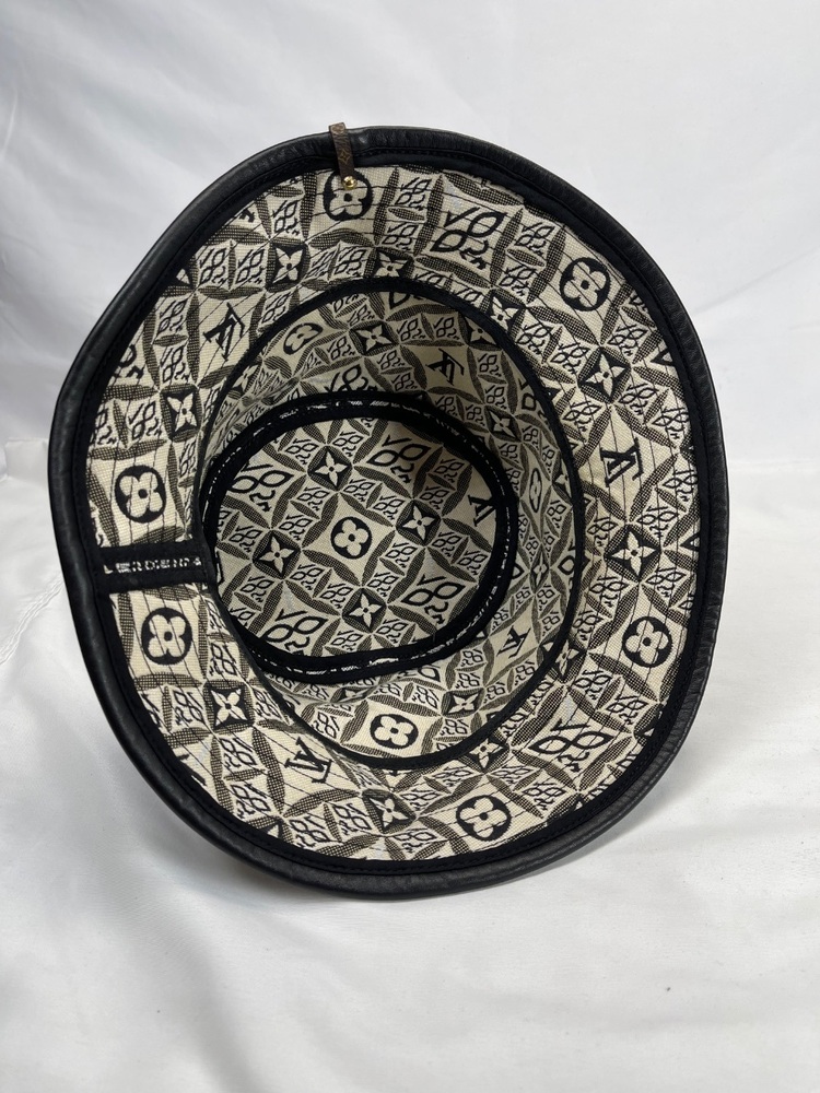 This is a nice bucket hat in good used condition. No rips or tears. No stains. Hat is 7'' across on the inside. No box or dust cover. To the eye it looks black but up close with light it is dark navy. Please see pictures for details.