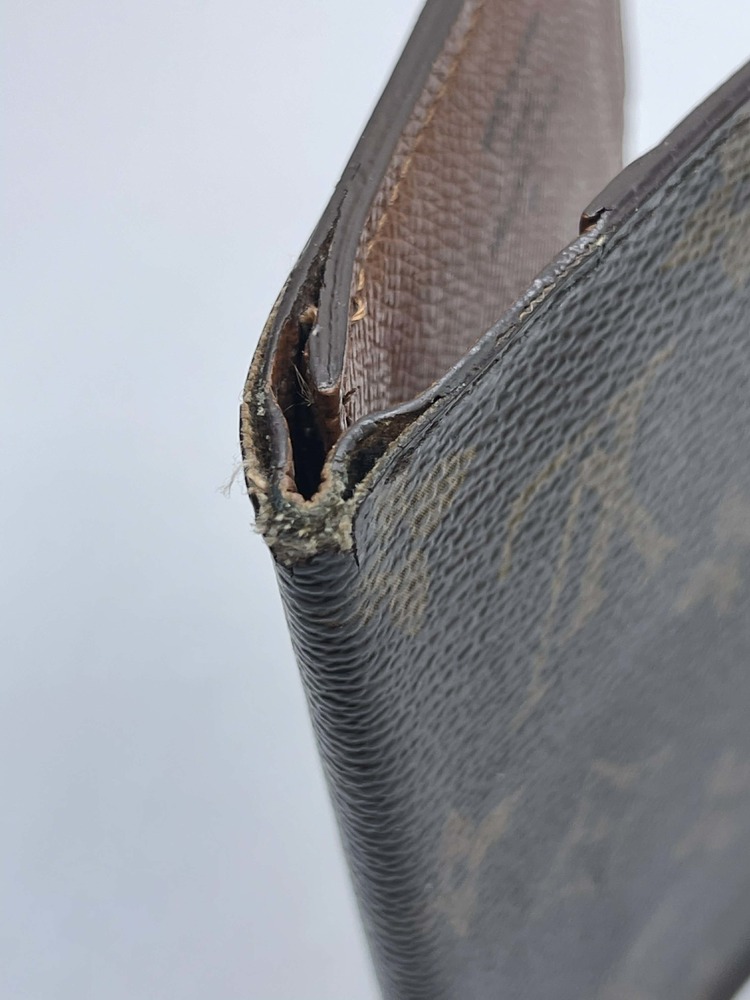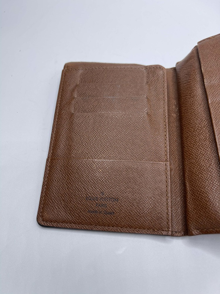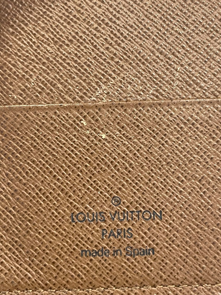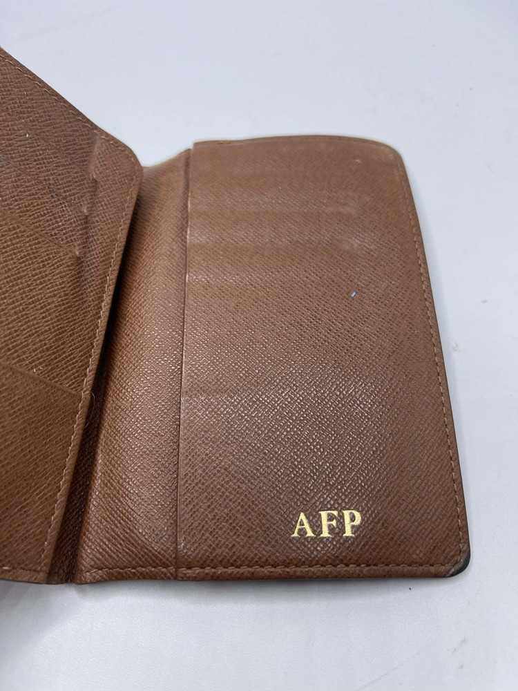 The Louis Vuitton Monogram Pocket Organizer is in used condition. The exterior of the wallet has scuffing and cracking. The interior of the wallet has wear. The overall condition of the wallet is a (C).