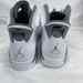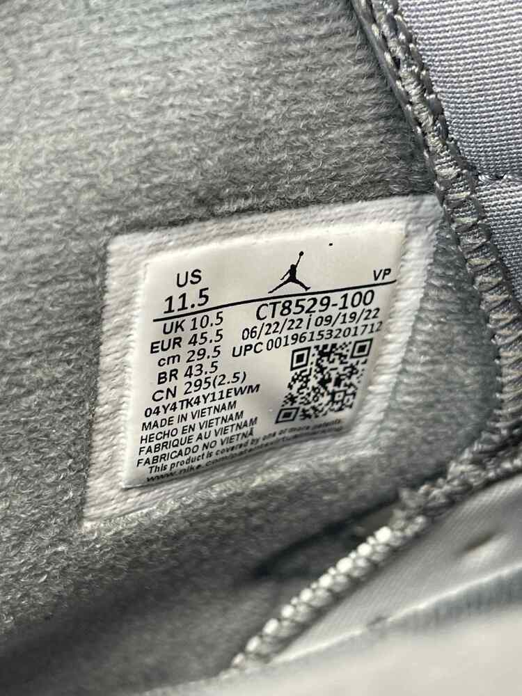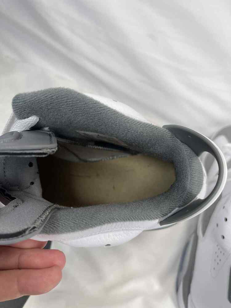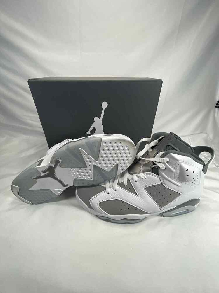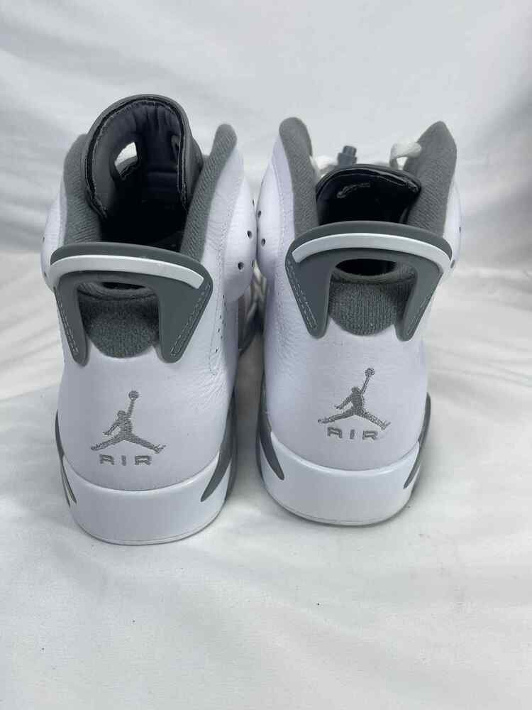 The Men's Size 11.5 Nike Air Jordan 6 Retro Cool Grey is in used condition. The bottoms have visible signs of use. The heals have stains and drag. The the rest of the exterior is in good condition. The interior has use on the insole. The shoes come with box and a COA from Entrupy. The overall condition of the shoes are a (B).