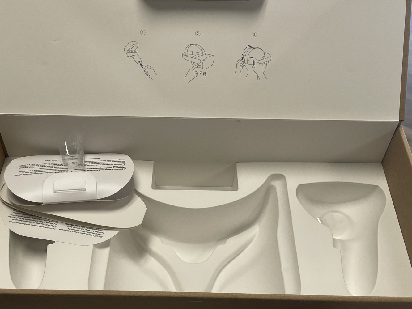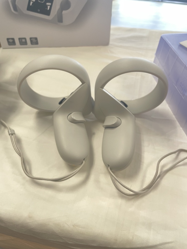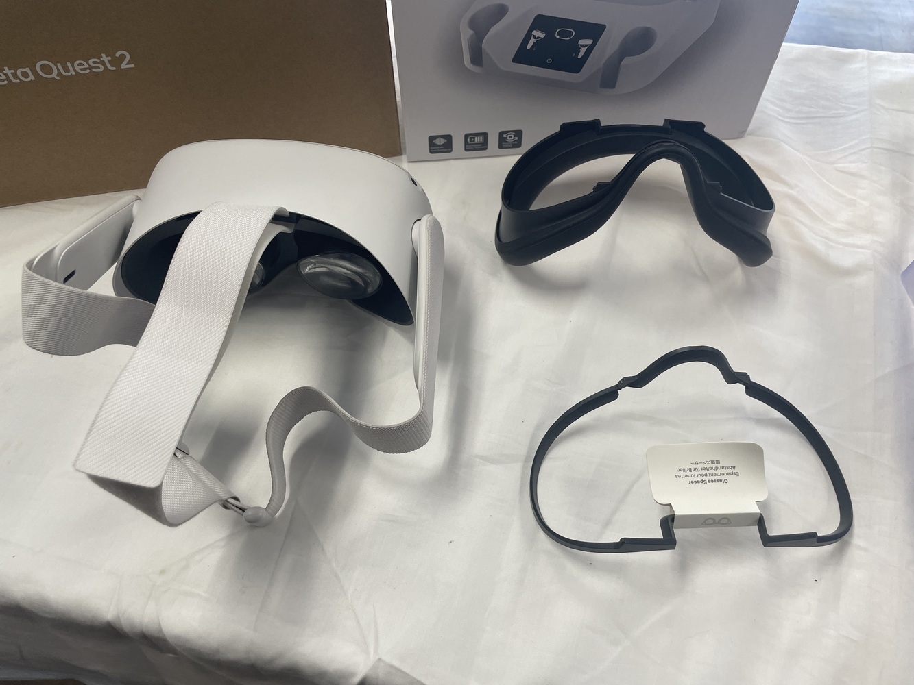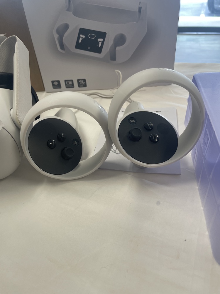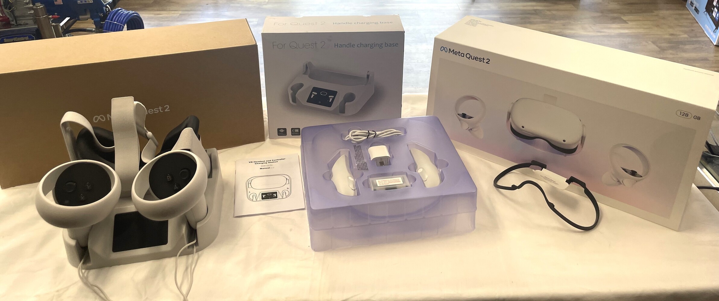 This is a preowned Meta Quest 2 in the Original Box will all accessories (EXCEPT the C Charge Cable and Brick) In Very Good Used Condition. Quest has been Tested and Factory Reset. Quest comes with a Wireless Charging Dock. Dock has the Original Battery Covers in the package with the recharagable ones already installed on the controllers - has 2 rechargable batteries (taken out for shipment) - Dongal for the quest in a plastic zip bag - and brick and c-cable. all in very good condition. Pictures are of the actual items you will receive.