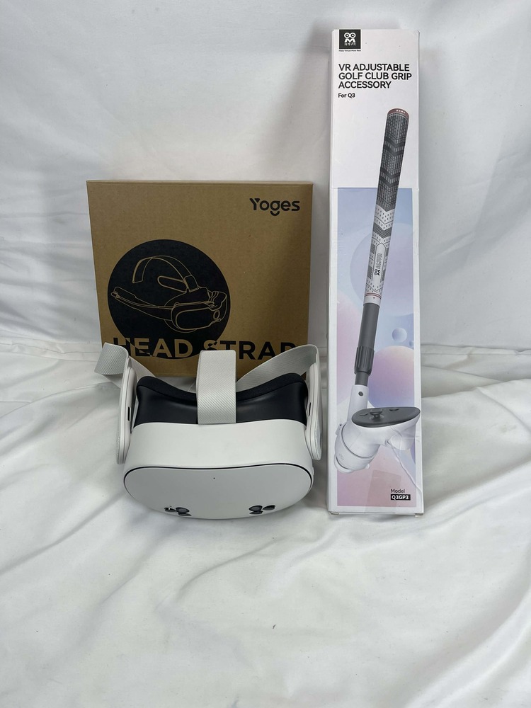The Meta Quest 3S 256GB is in used condition. It comes with an after market headset battery, golf club attachment and charger. Everything is fully functional and factory rest.