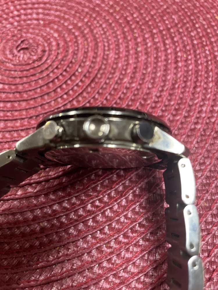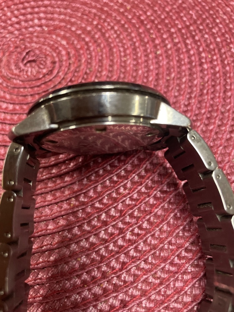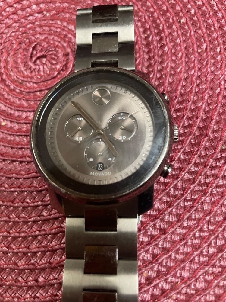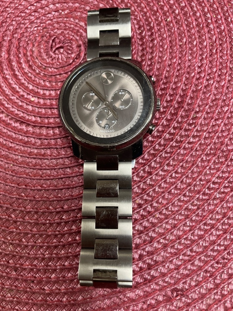 This is a Preowned Movado Bold Men's Gunmetal 43MM -MB 01.34.6155 . Watch Band is small will fit a 7 inch wrist snuggly. Watch is in good condition does show some signs of wear.