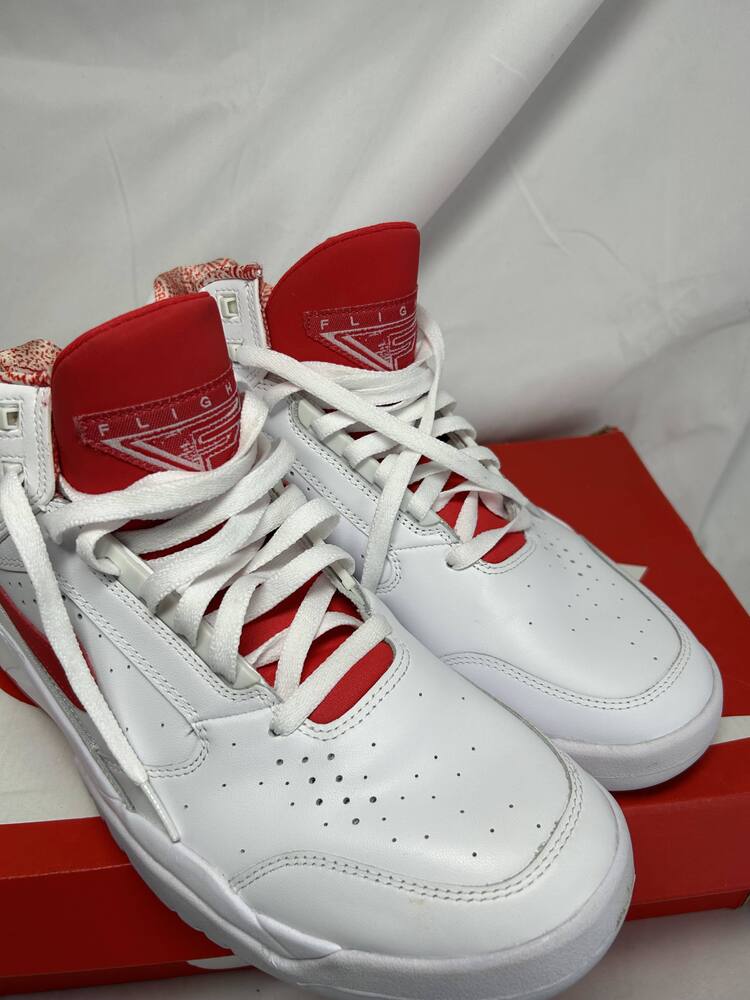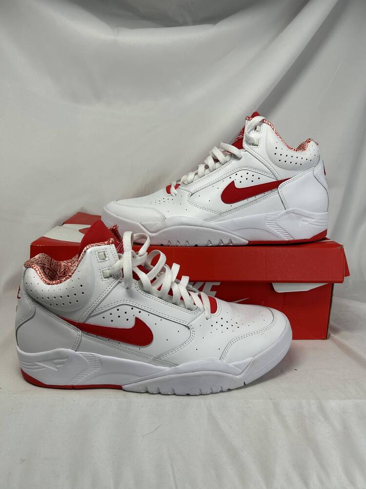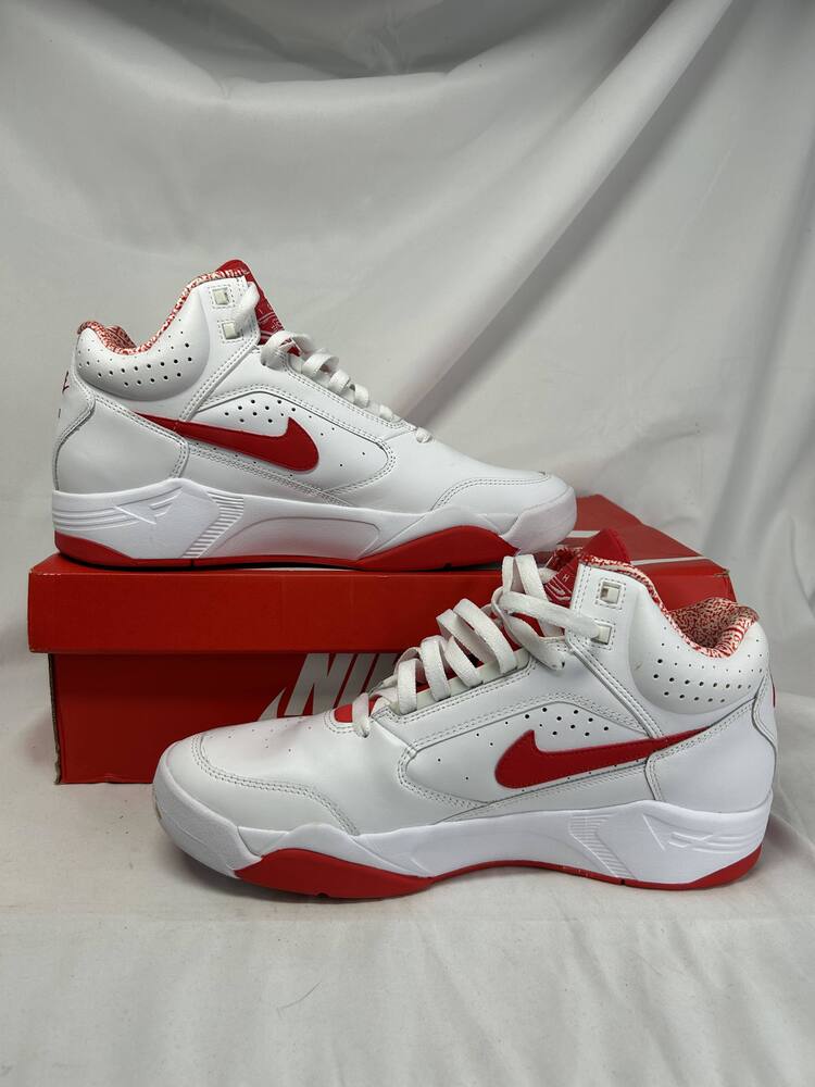 The Nike Air Flight Lite Mid University Red / White Men's Size 11 are pre-owned / used. They are minimally worn but do have slight signs of use. No odor. Comes in the original box.