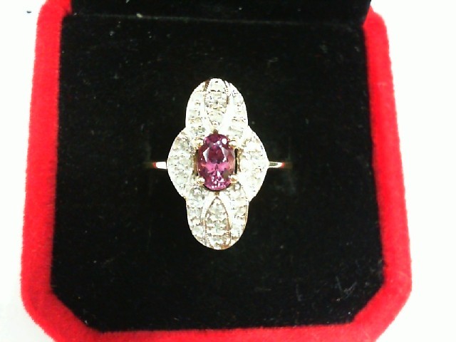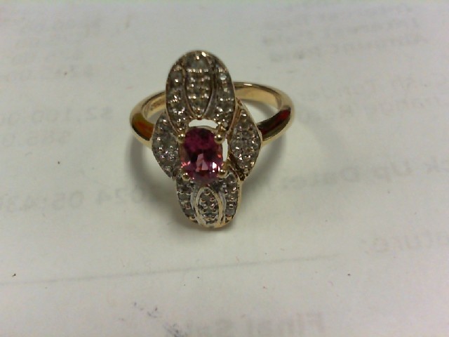 Pink Stone & Diamond Unique Ring - YG - Sz 6 - 10K - PPSKN