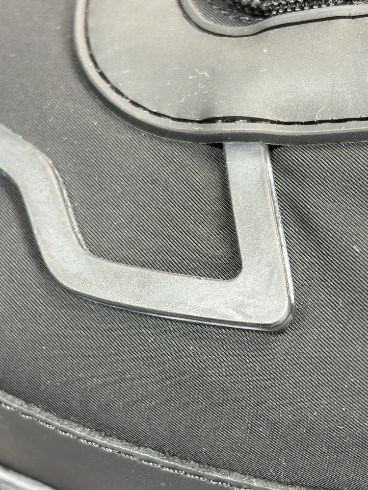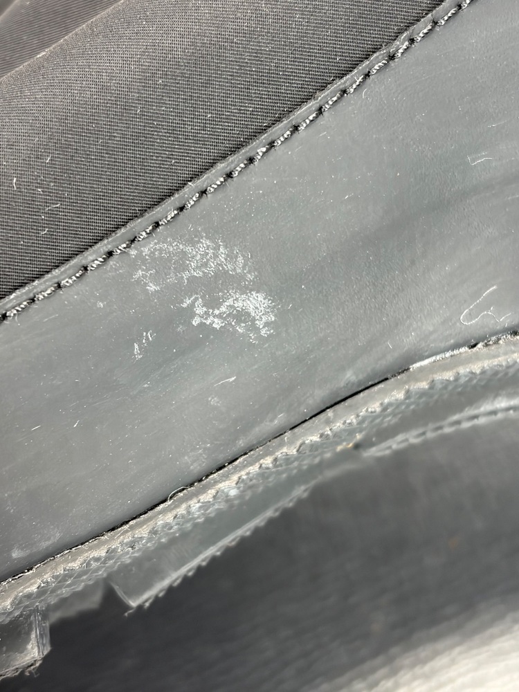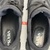 USED CONDITION FAIR. SCUFF MARKS ON HEEL OF LEFT SHOE. SLIGHT FADING ON RUBBER TRIM NEAR TOE. VARIOUS SLIGHT SCUFF MARKS ON RUBBER TRIM AROUND SHOE.