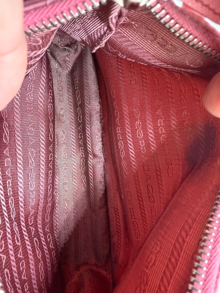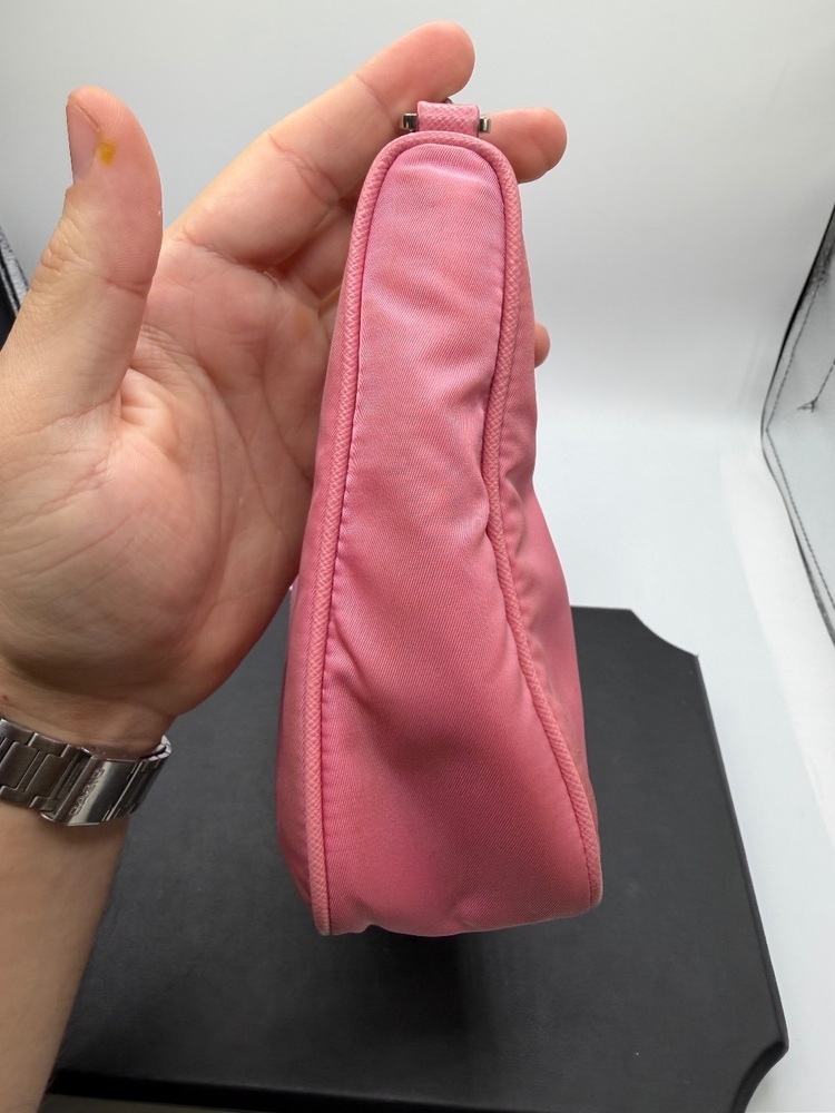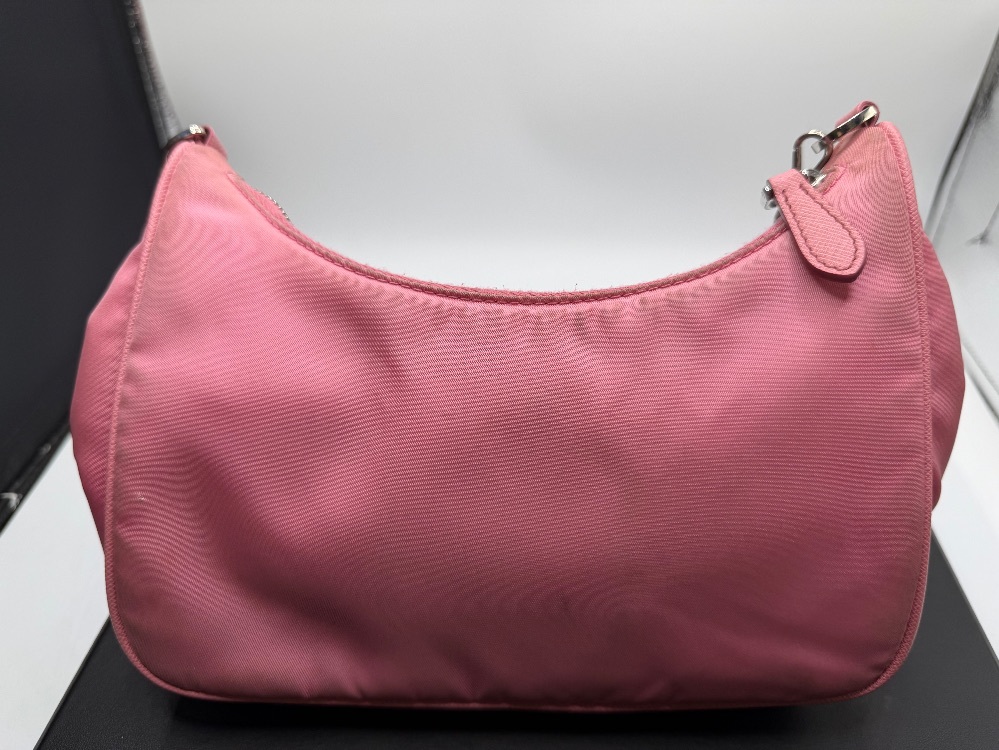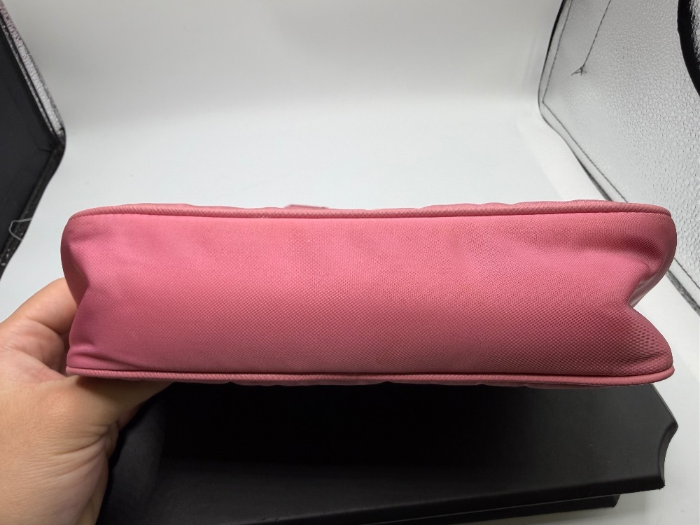 Apparel Purses Prada Re-Edition 2005 Alabaster Pink no box or dust bag in fair condition missing strap and pouch. The bag has some stains and discoloration shown in photos.
