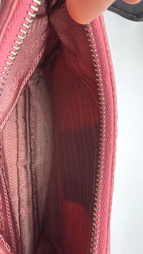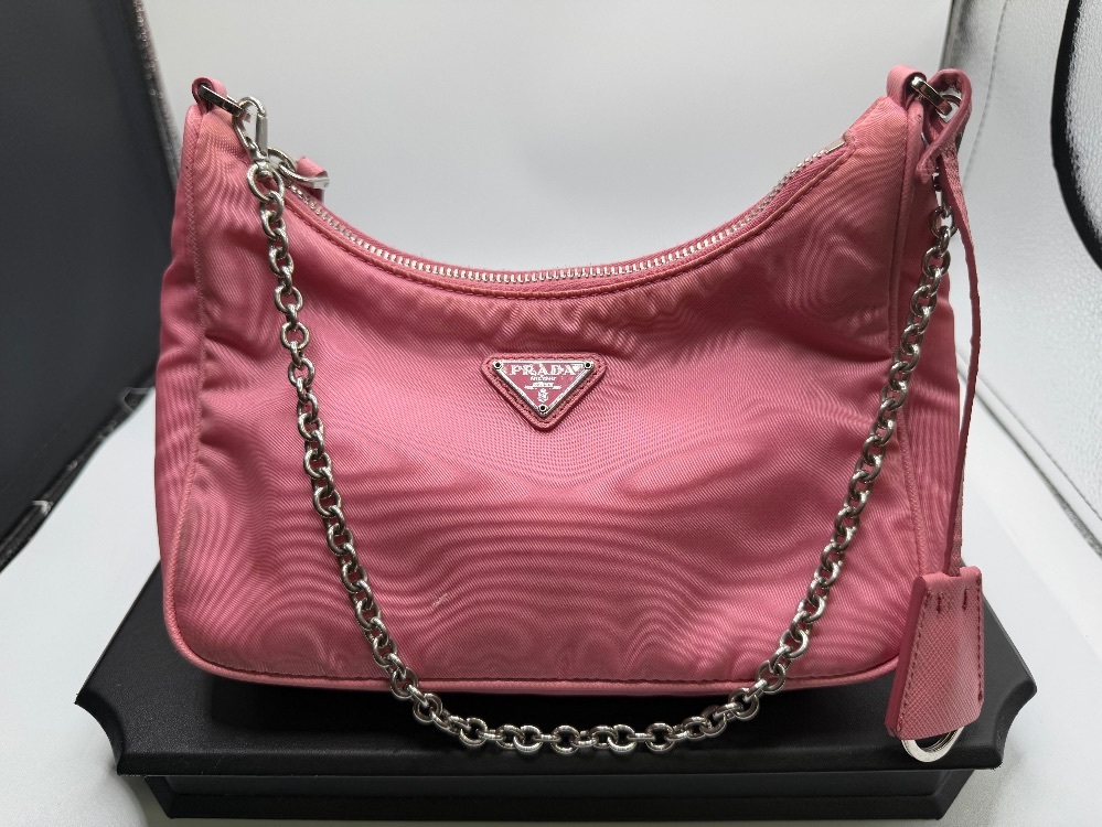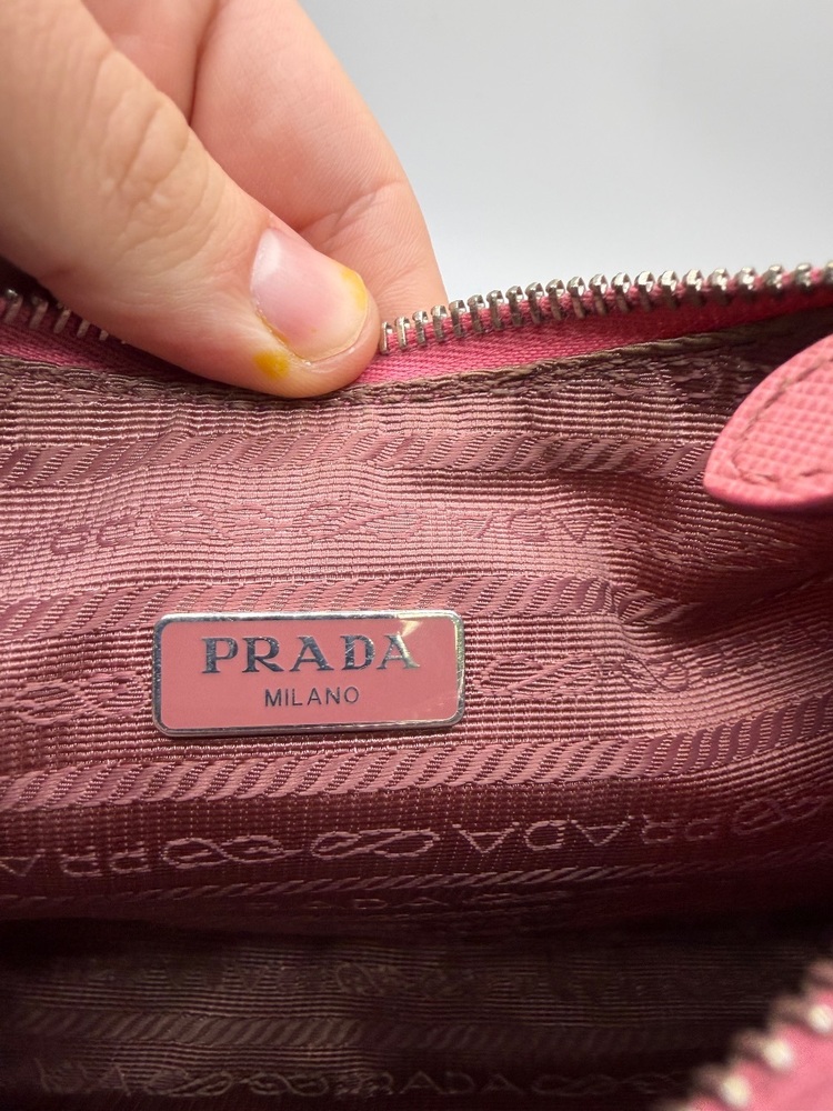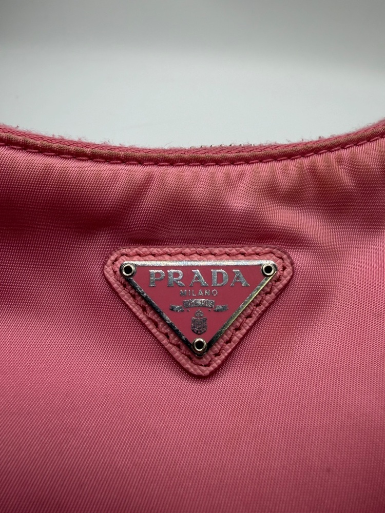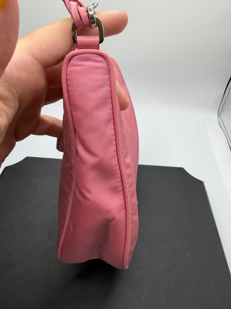 Apparel Purses Prada Re-Edition 2005 Alabaster Pink no box or dust bag in fair condition missing strap and pouch. The bag has some stains and discoloration shown in photos.