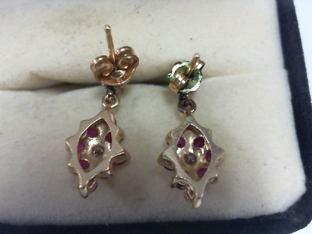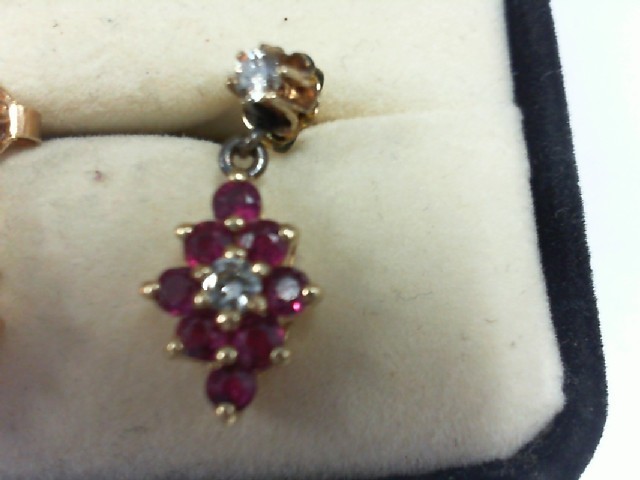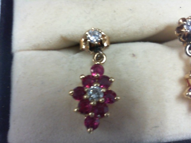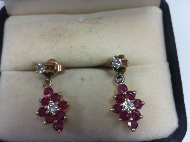 Ruby & Diamond Dangle Earrings-14K - 2.4g