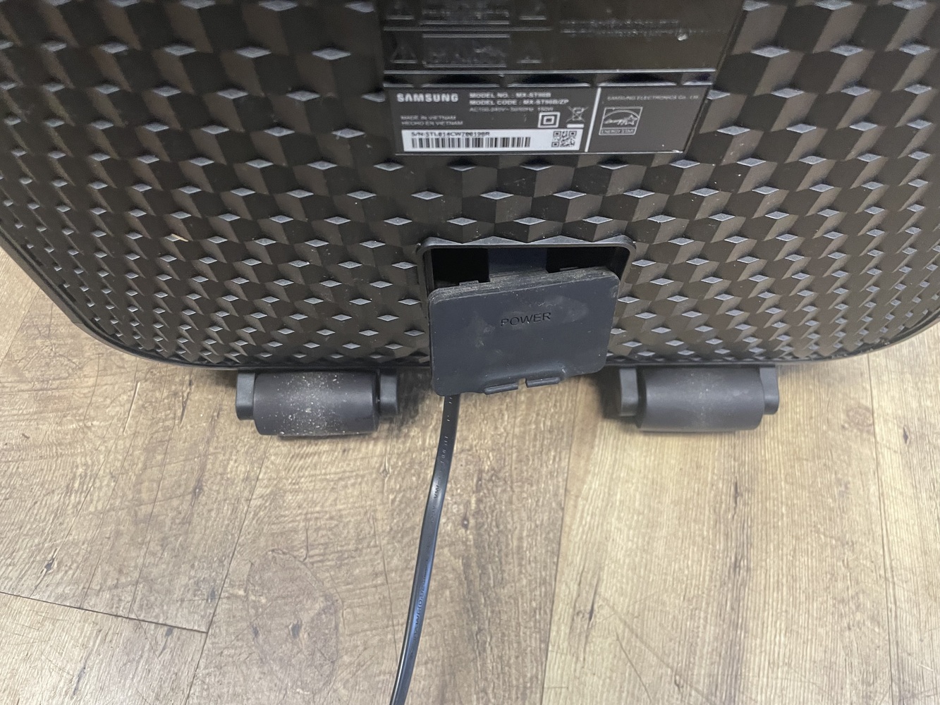 This is a Very Nice Preowned Samsung MX-ST90B Portable Party Speaker with Remote and Power Cable. Party Speaker has 1700W,IPX5. Does show normal wear and there are a few spots of white paint on the side panels. Remote Control shows the most wear with scratches on it. Some Helpful Gerneral Information Below: