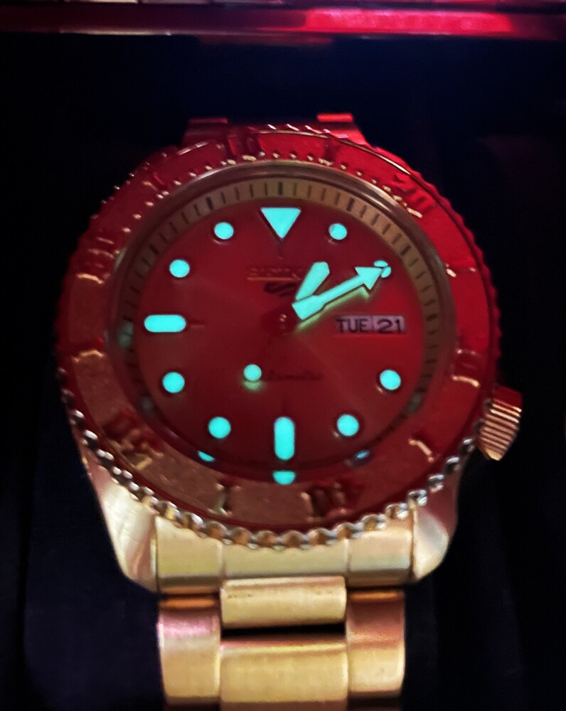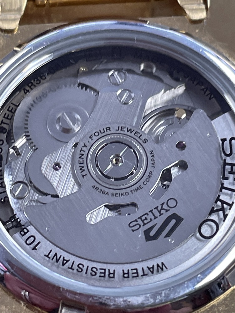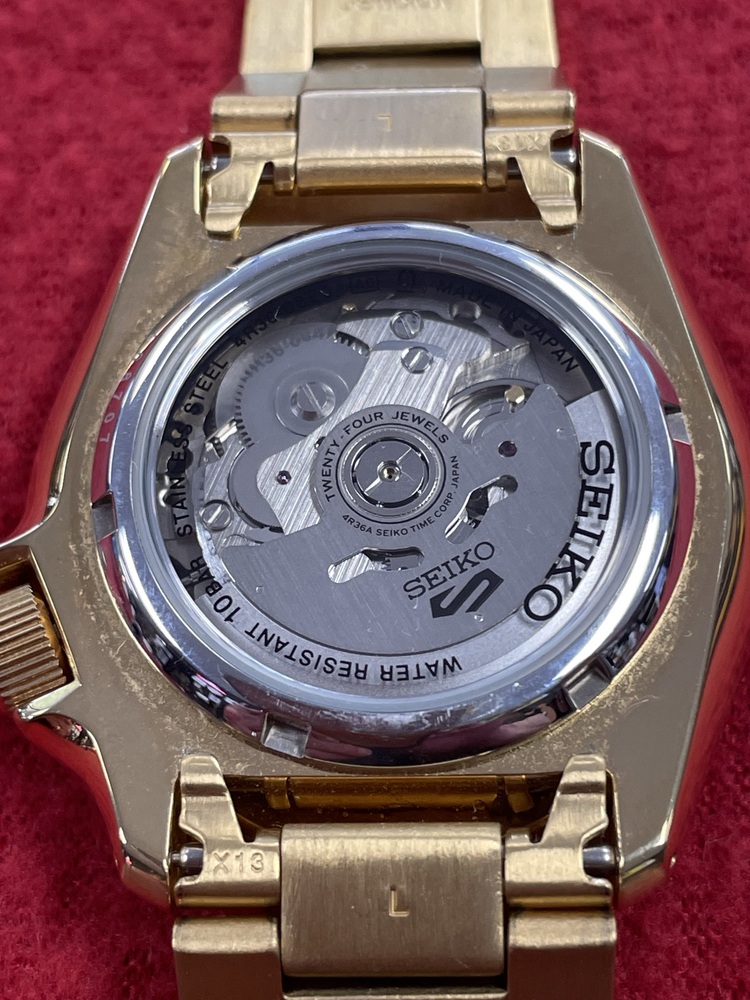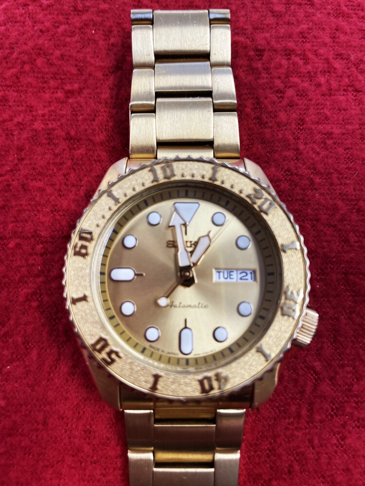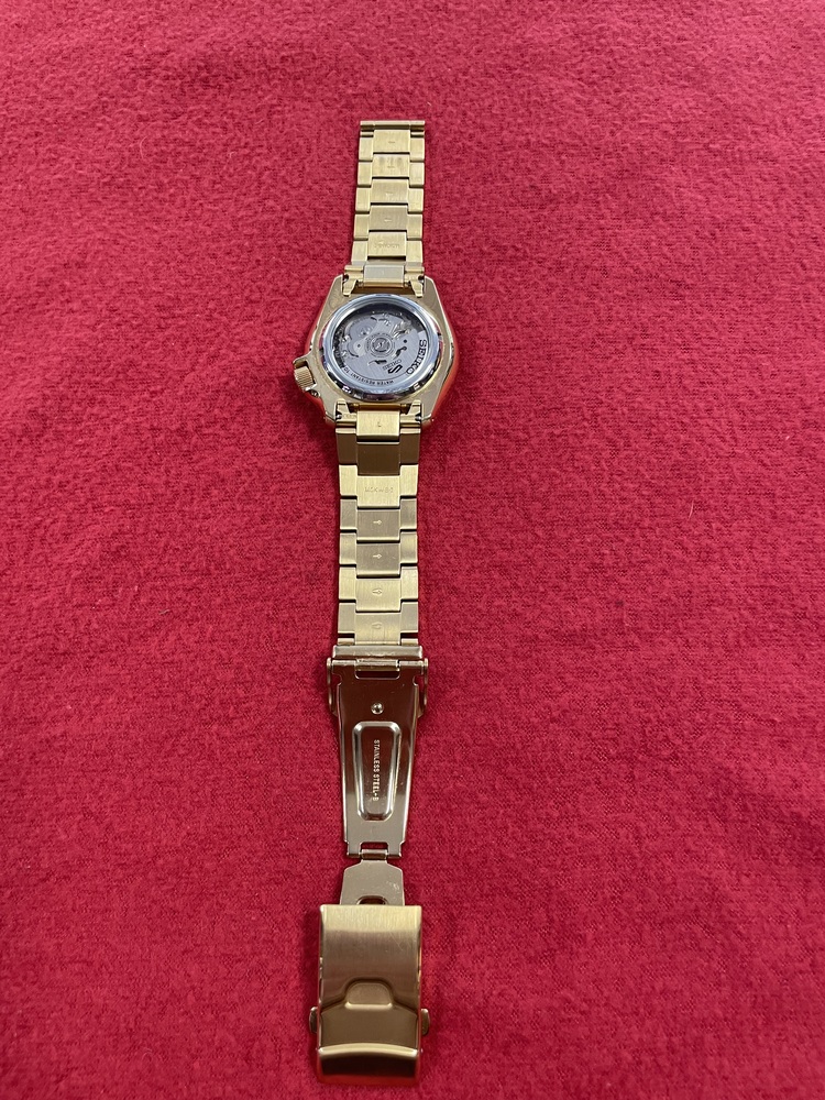 This is a Very Nice Preowned Sekio 5 Watch 4R36-08E0 40mm Automatic Gold Dial Watch Made in Japan. Watch does have some lite scratches in the banc and back of casing. Crystal appears to be clean and clear . Will Fit up to a 7 1/2 inch wrist comfortably . All Pictures are of the Actual Item you will Receive.