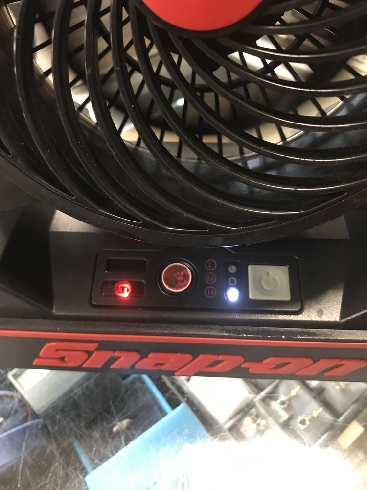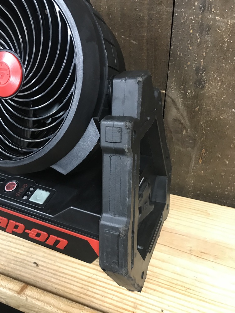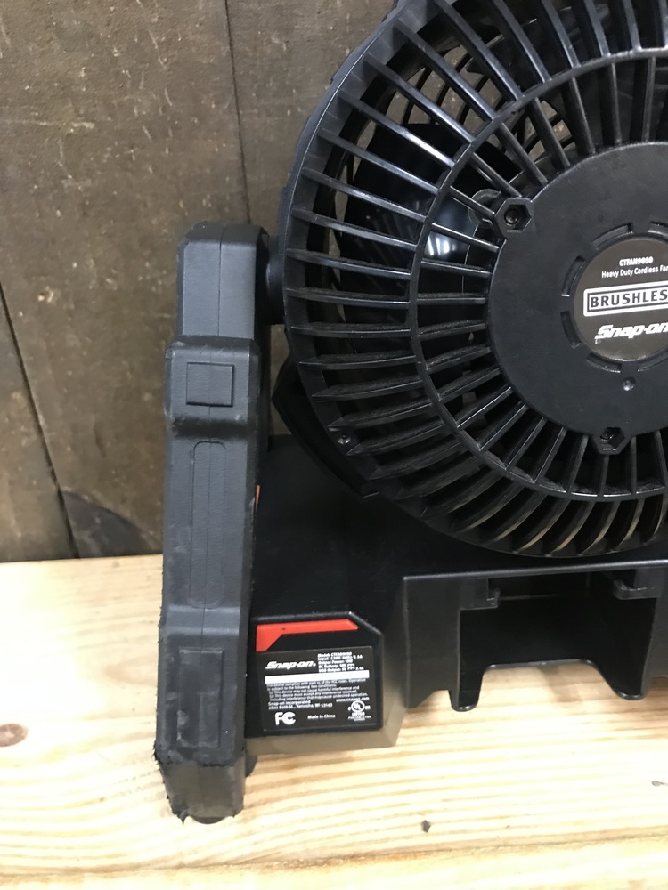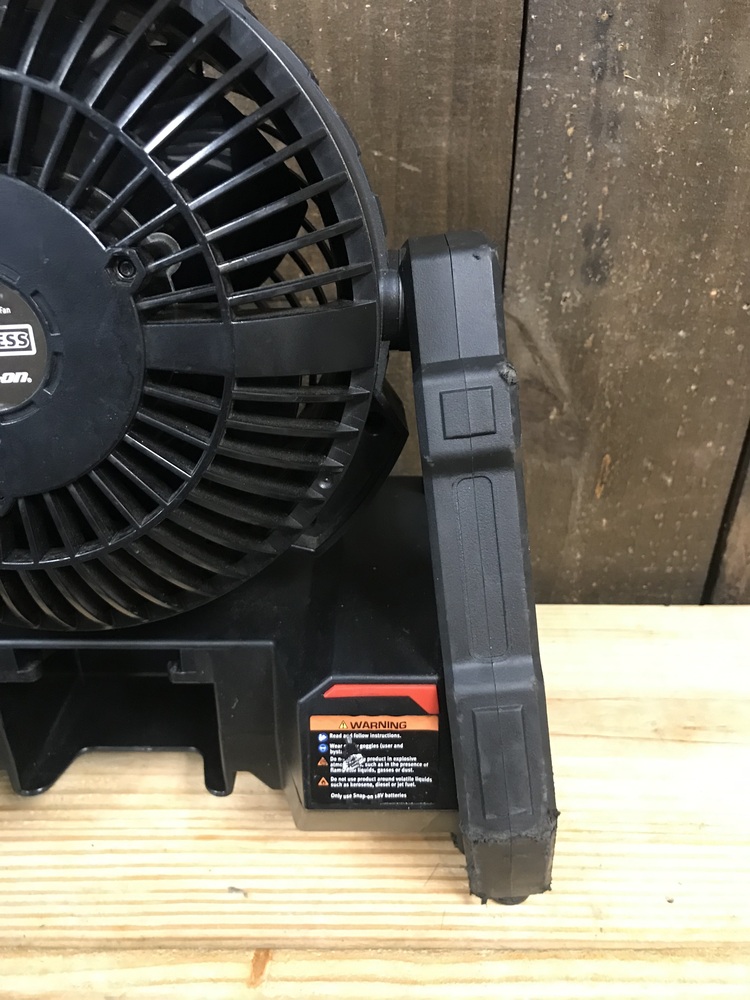 This is a great working fan that functions as it should. Fan only. No battery or charger. The fan does have signs of wear. There are some scuffs and dings present. Please see pictures for details.