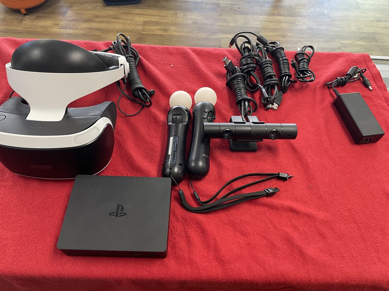 This is a preowned item and it does show signs of usage especially the headset. Get ready to put on sanity at risk with the Sony PlayStation PS4 PSVR 2nd Gen bundle. Dive into a world where sofas are evil creatures, and dust particles are boss enemies! Be warned - your living room might get jealous!