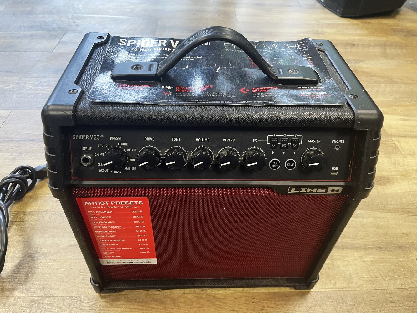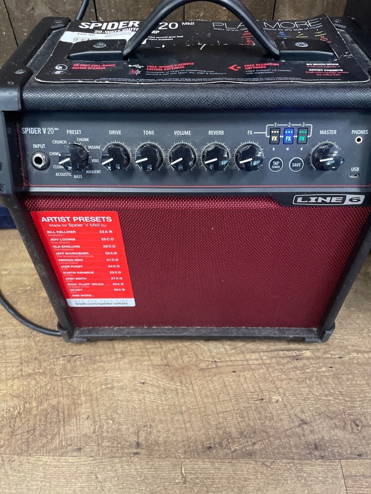 This is a Preowned Spider V-20 LINE 6 AMP Red Edition . In good working condition Tested comes with Power Cord. Does show normal signs of usage. Please See Pictures of Actual Item.